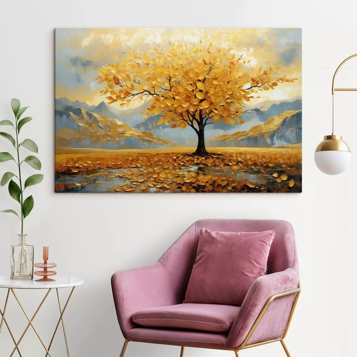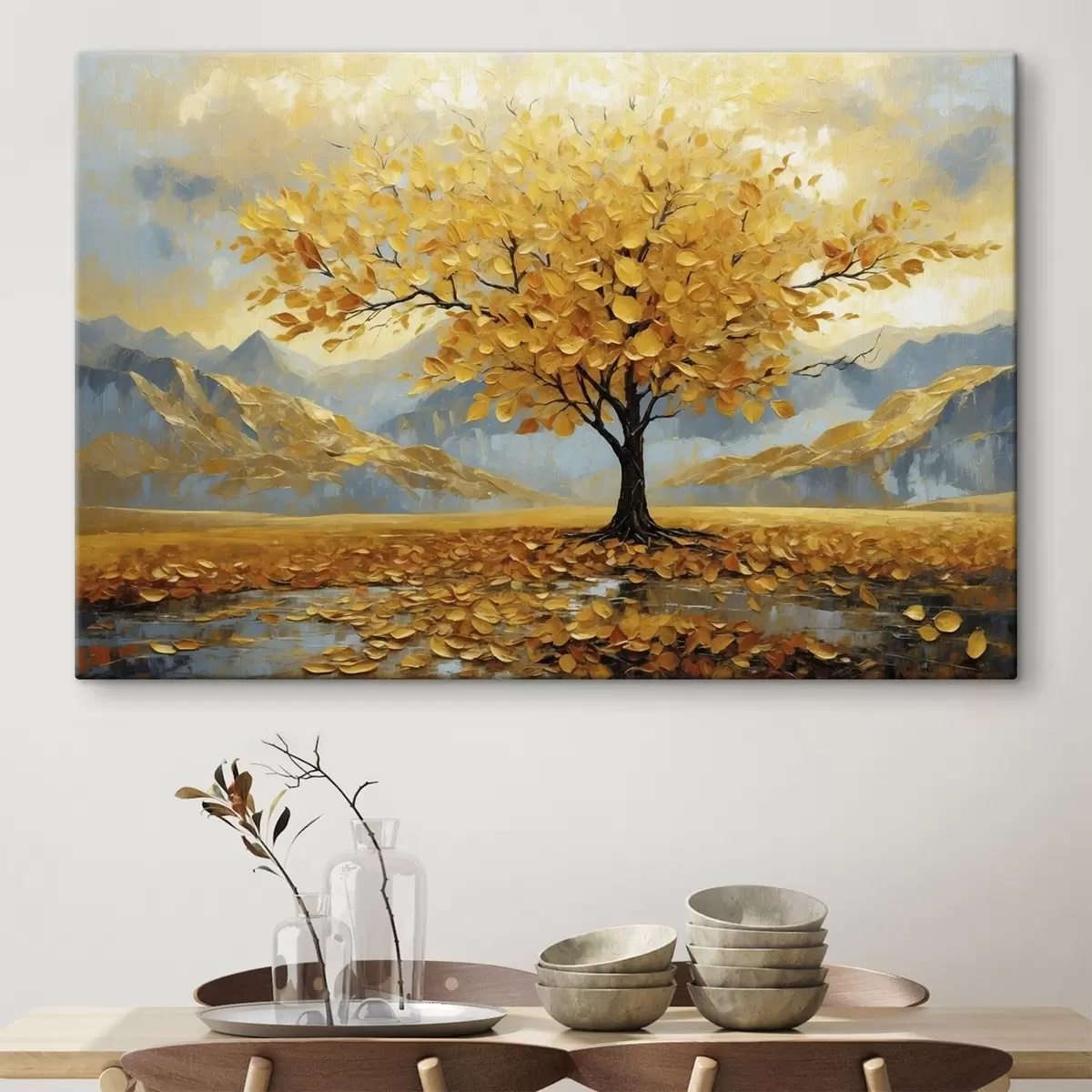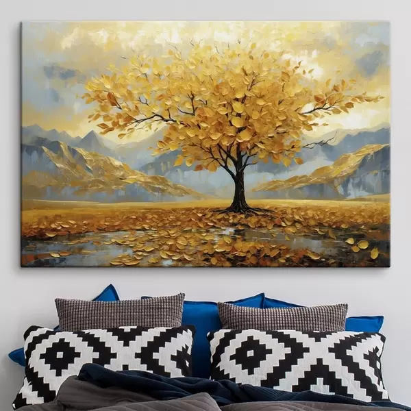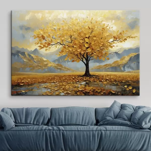 Vászonkép Sárga levelű fa hegyvidéki tájban Nr s47285