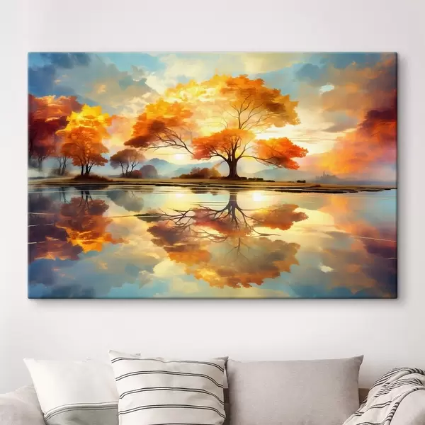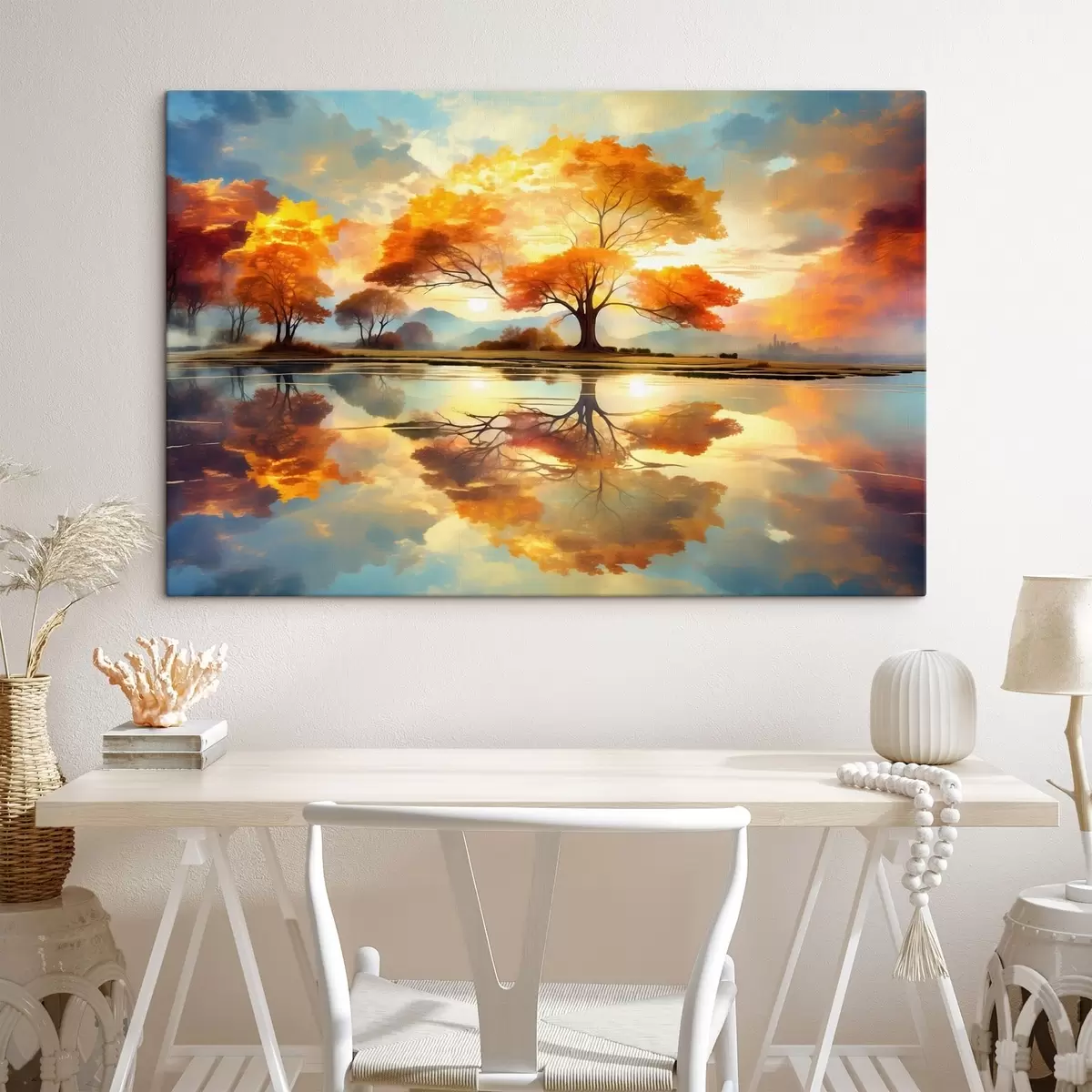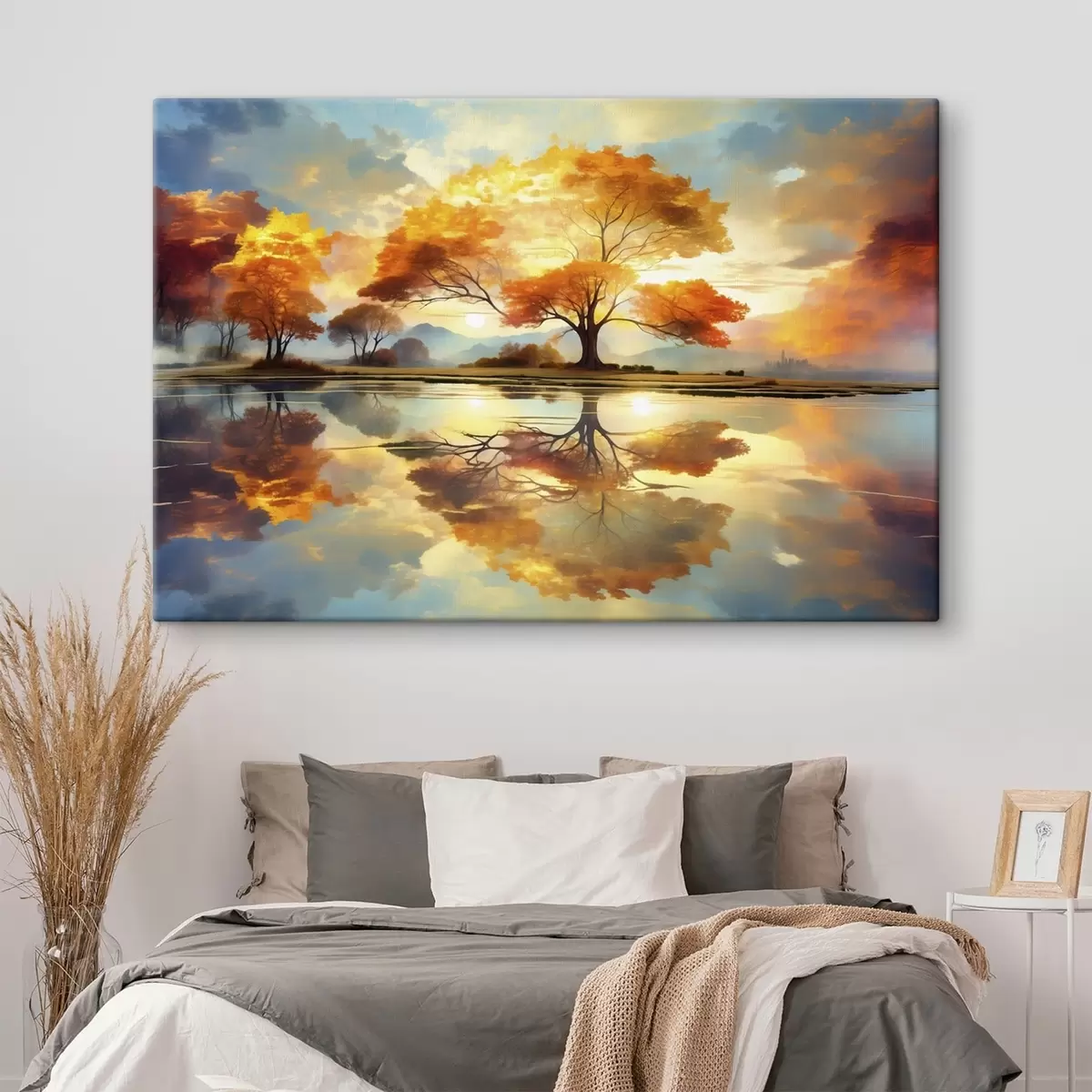 Vászonkép Élénk fák tükröződnek a vízben Nr s47287