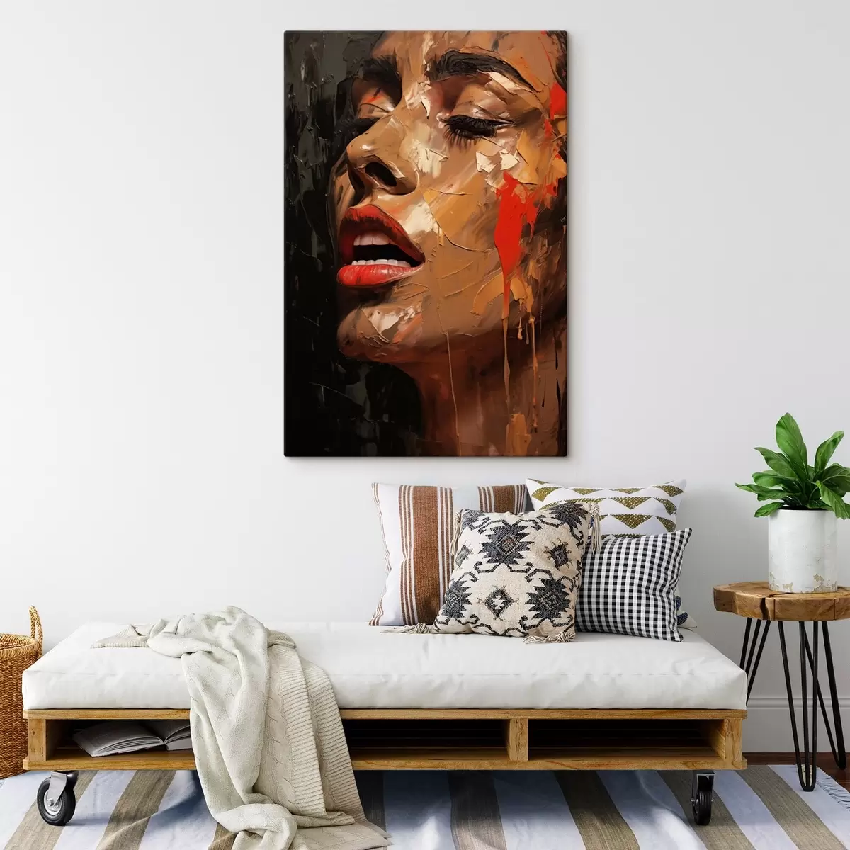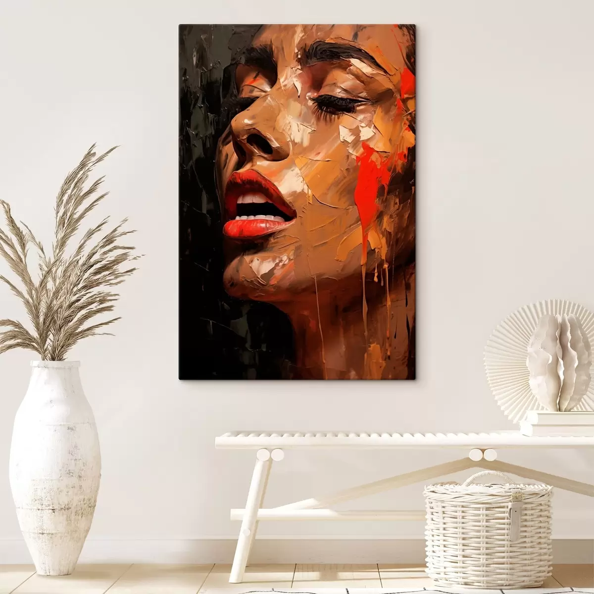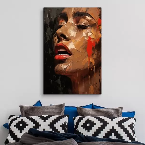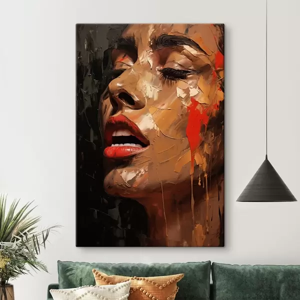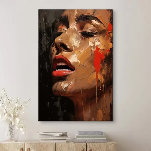 Vászonkép Női portré meleg ecsetvonásokkal és vörös tónusokkal Nr s47294