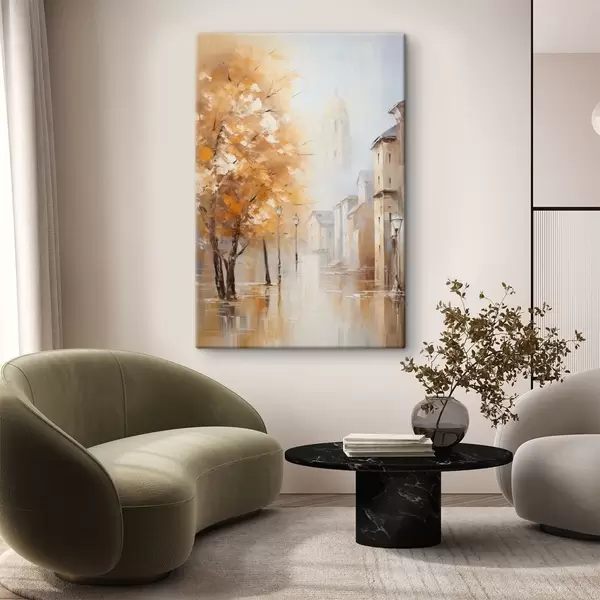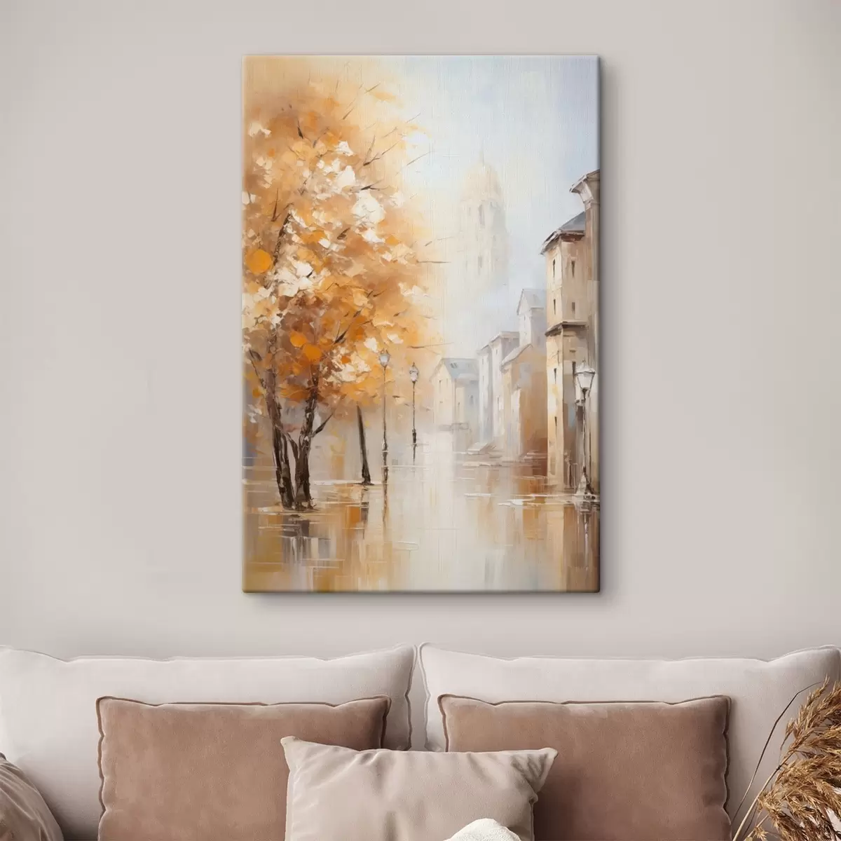 Vászonkép Fákkal és kupolával díszített utca ködben Nr s47304