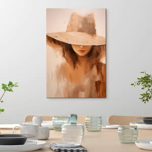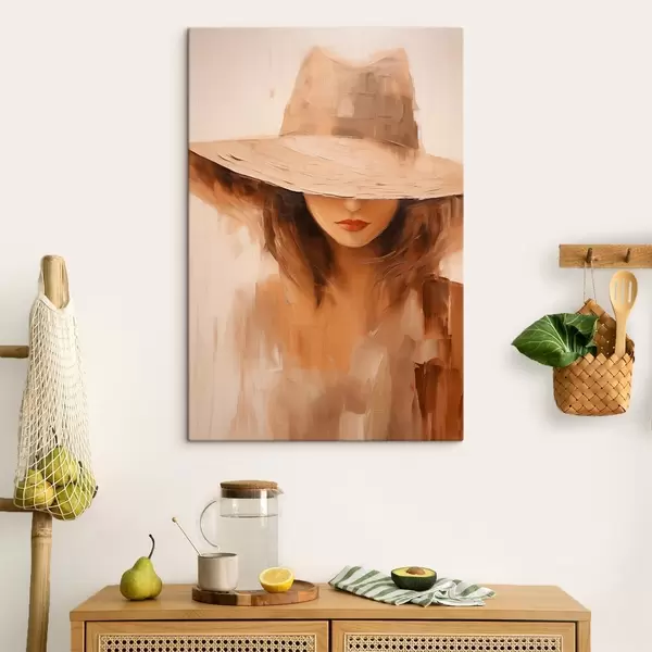 Vászonkép Kalapos nő meleg, absztrakt ecsetvonásokkal Nr s47312