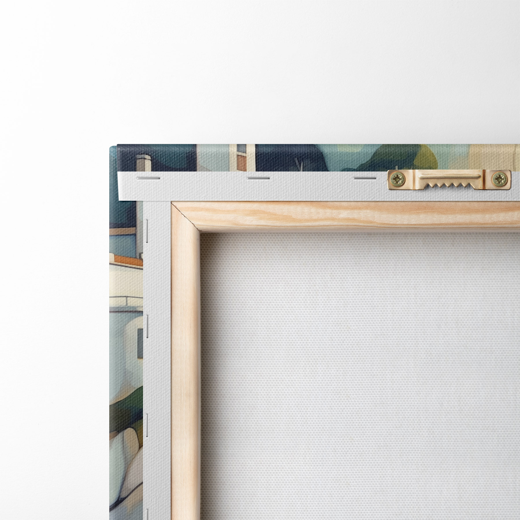 Ahhoz, hogy a vásznat a feszítőrúdra feszítsük anélkül, hogy a kép megsérülne, tükrözött képet használunk.