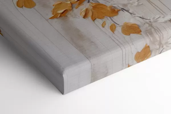 Vászonkép Fehér virágok sárga akcentussal és finom levelekkel texturált háttér előtt, modern művészet Nr s47414