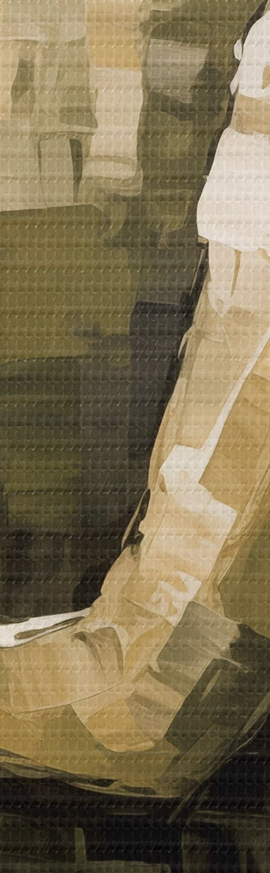 Ahhoz, hogy a vásznat a feszítőrúdra feszítsük anélkül, hogy a kép megsérülne, tükrözött képet használunk.