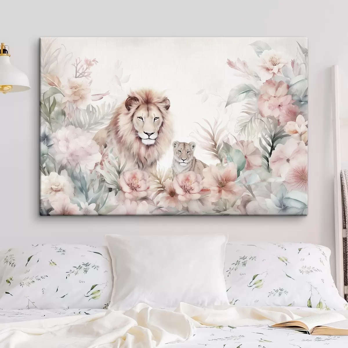 Vászonkép Oroszlánok trópusi bozótosban, akvarell utánzat Nr s47640