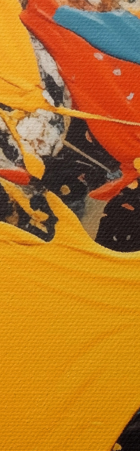 Ahhoz, hogy a vásznat a feszítőrúdra feszítsük anélkül, hogy a kép megsérülne, tükrözött képet használunk.