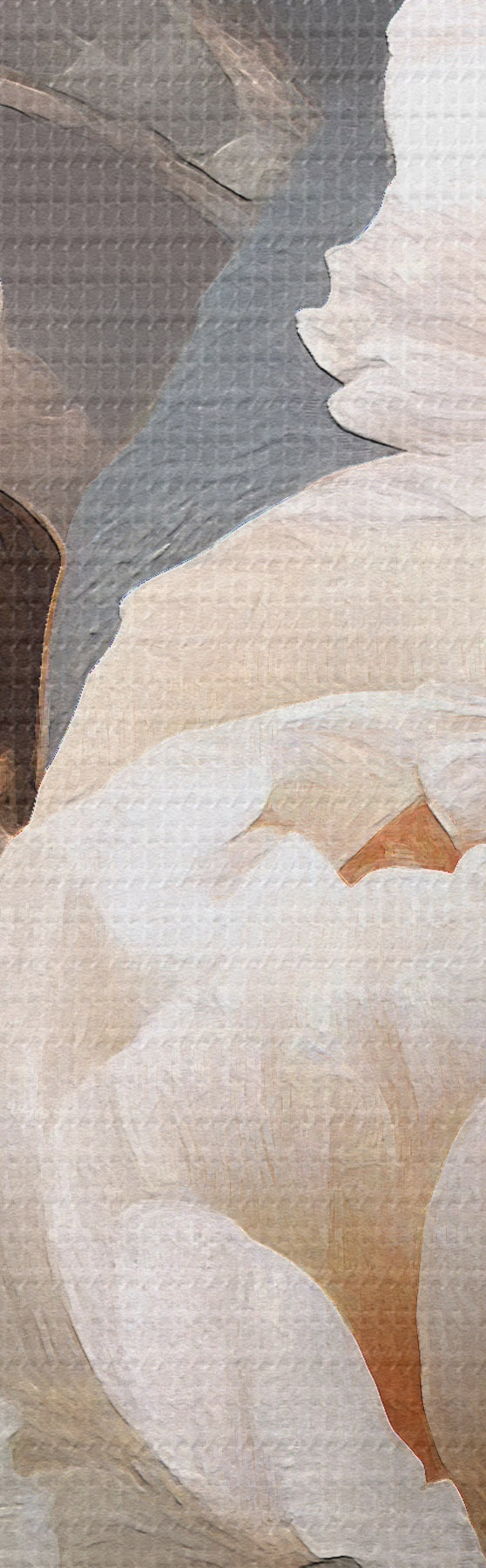 Ahhoz, hogy a vásznat a feszítőrúdra feszítsük anélkül, hogy a kép megsérülne, tükrözött képet használunk.
