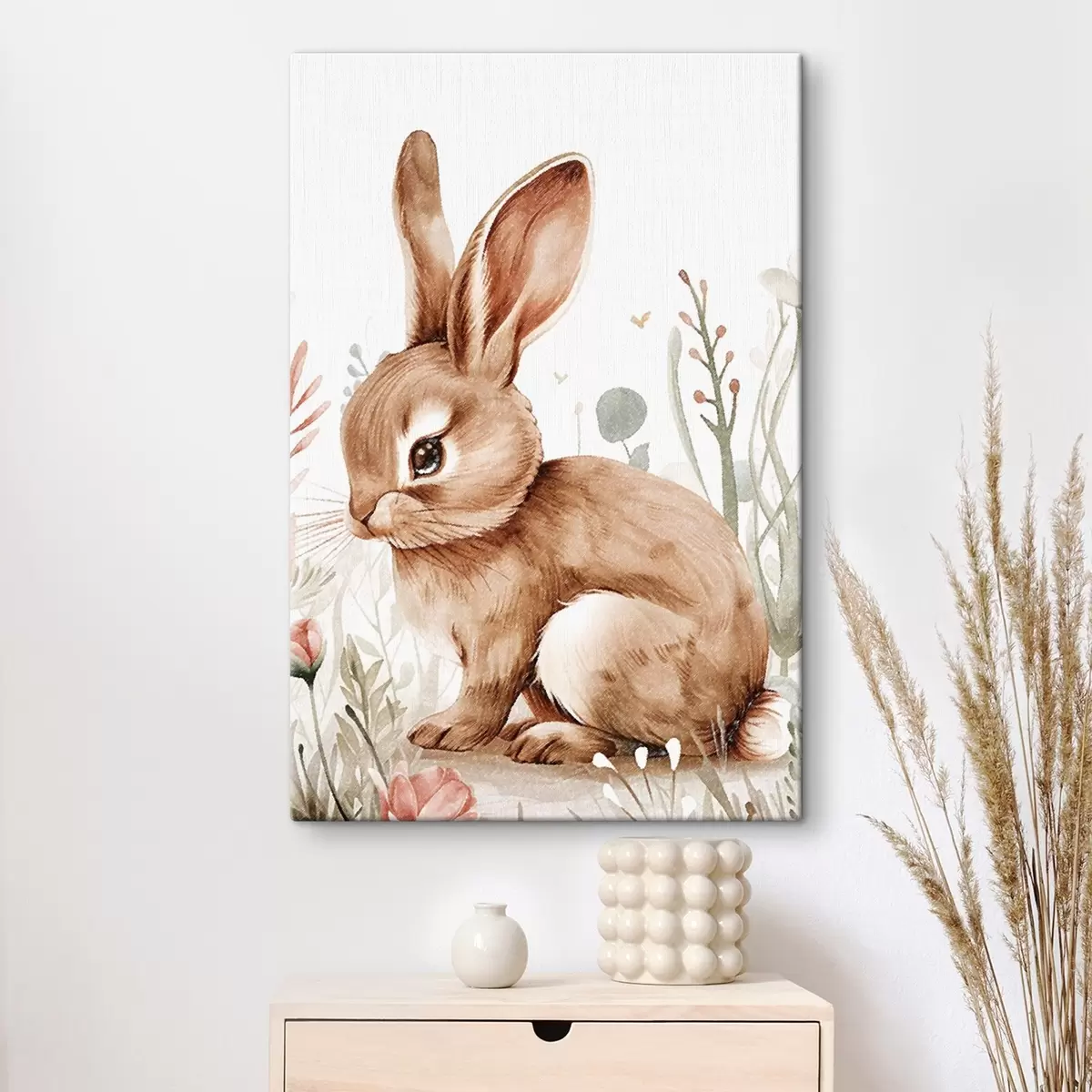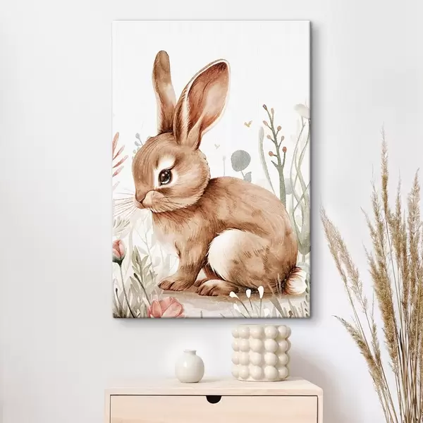 Vászonkép Cuki nyuszi virágok között, ceruzaeffektus Nr s47741