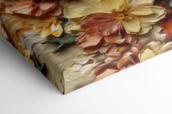 Vászonkép Gazdag kompozíció élénk virágokból meleg színekben Nr s47760