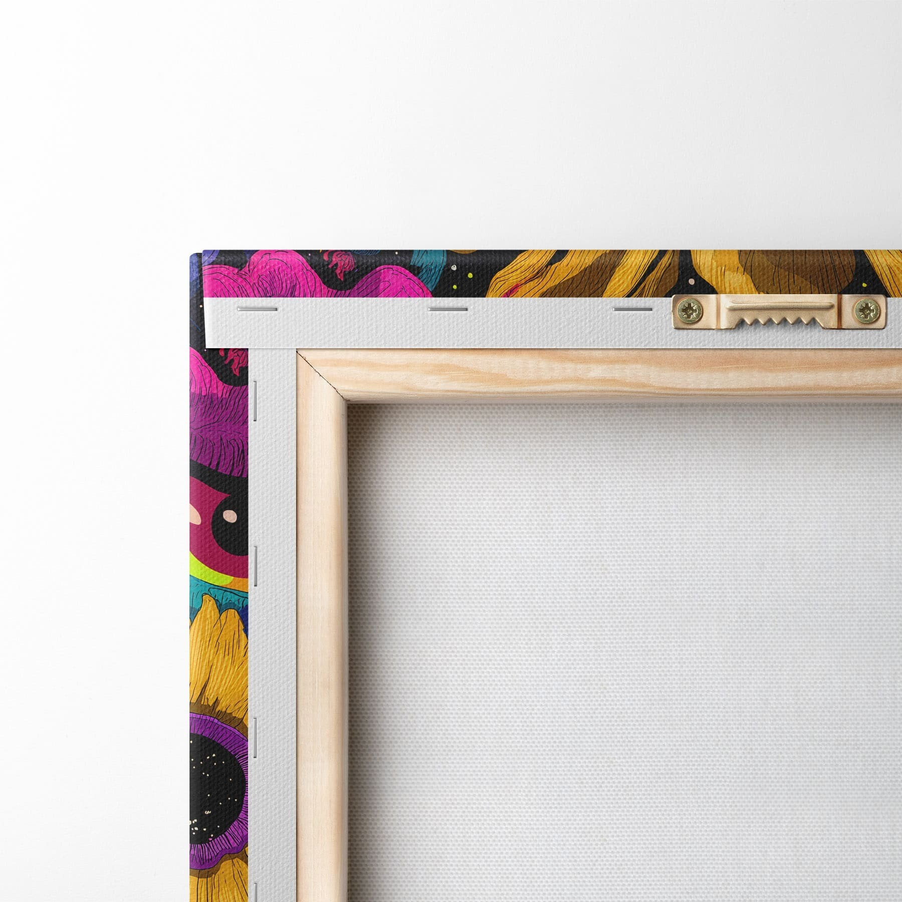 Ahhoz, hogy a vásznat a feszítőrúdra feszítsük anélkül, hogy a kép megsérülne, tükrözött képet használunk.