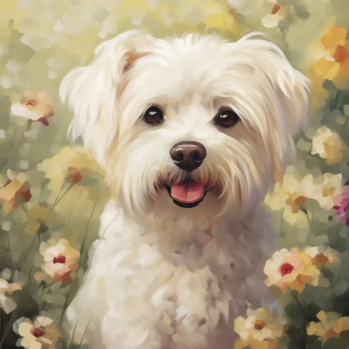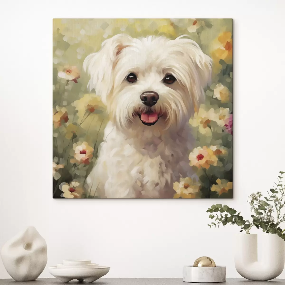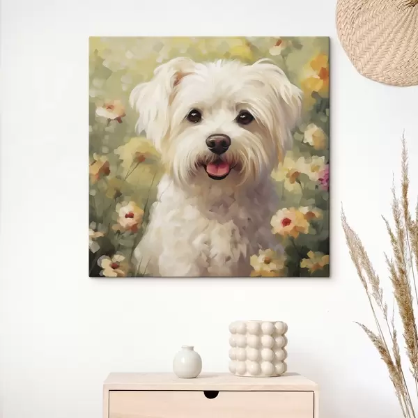 Vászonkép Kis kutya virágok között Nr s47811