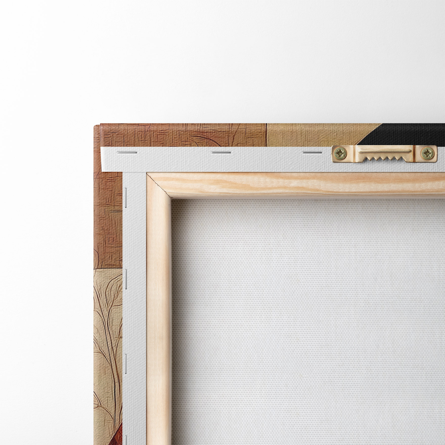 Ahhoz, hogy a vásznat a feszítőrúdra feszítsük anélkül, hogy a kép megsérülne, tükrözött képet használunk.