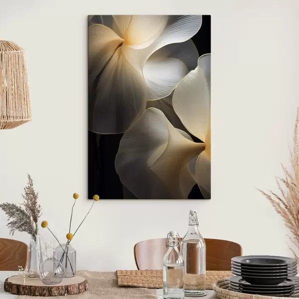 Vászonkép Absztrakt, áttetsző szirmok finom vonalakkal, sötét háttér előtt Nr s47859