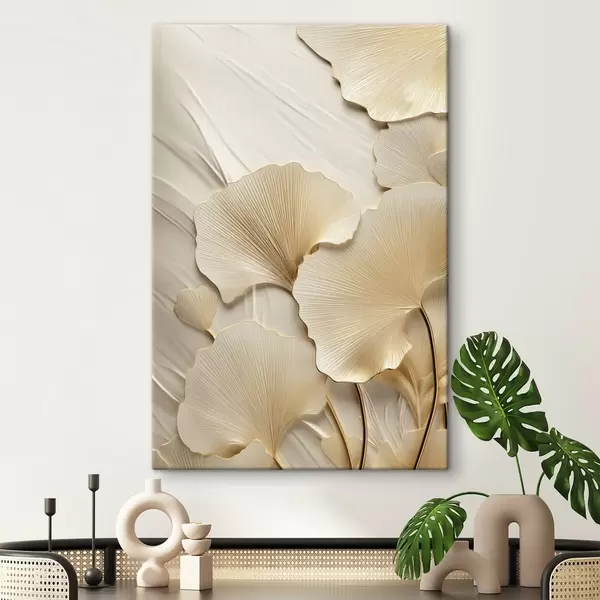 Vászonkép Ginkgo levélkivonat texturált, világos háttér előtt, elegáns és absztrakt kompozíció Nr s47867