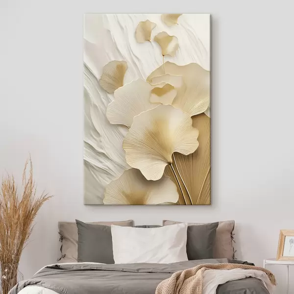 Vászonkép Ginkgo levélkivonat texturált, világos háttér előtt, elegáns és absztrakt kompozíció Nr s47868