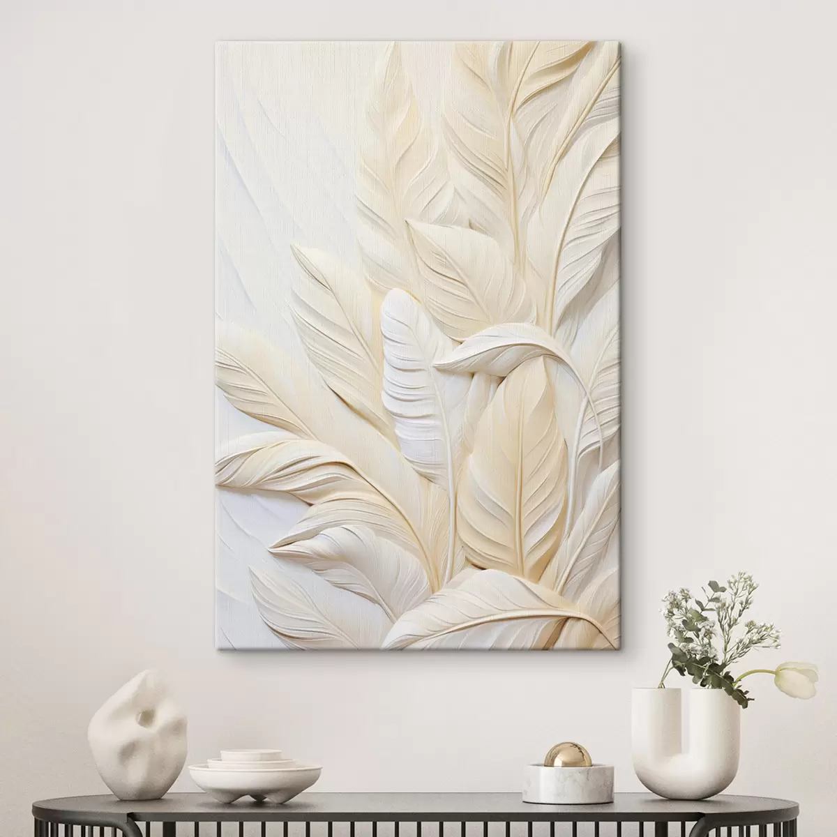 Vászonkép Krém színű tollak egymást átfedve, puha, világos háttérrel Nr s47883