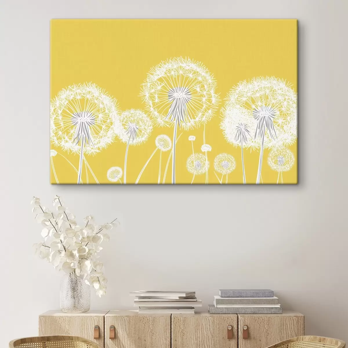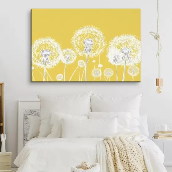 Vászonkép Fehér pitypangok sárga háttér előtt Nr s47890