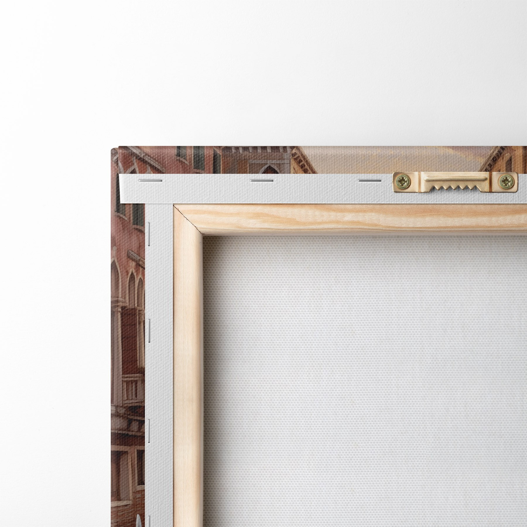 Ahhoz, hogy a vásznat a feszítőrúdra feszítsük anélkül, hogy a kép megsérülne, tükrözött képet használunk.