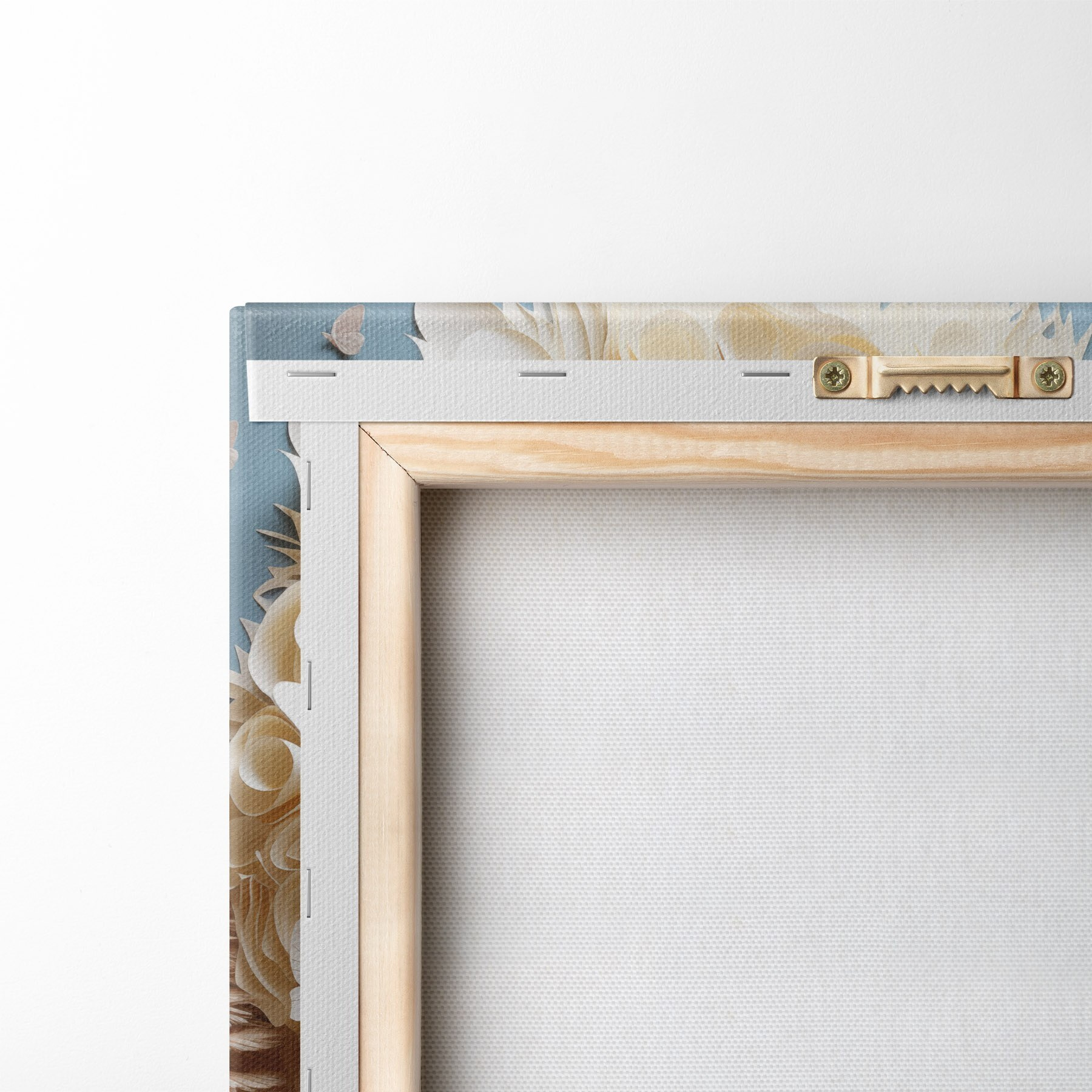 Ahhoz, hogy a vásznat a feszítőrúdra feszítsük anélkül, hogy a kép megsérülne, tükrözött képet használunk.