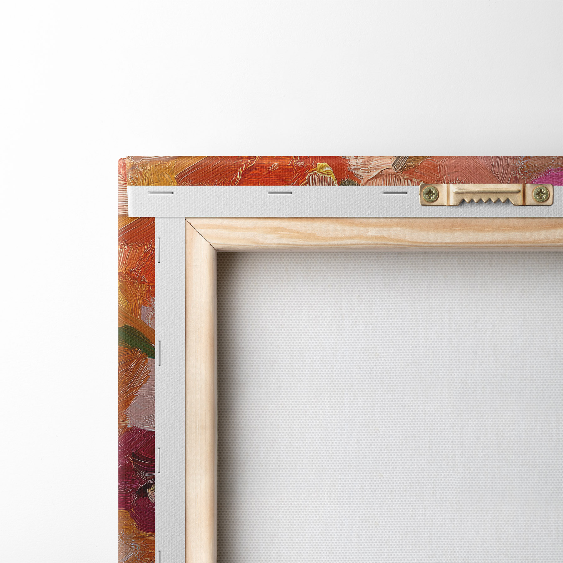 Ahhoz, hogy a vásznat a feszítőrúdra feszítsük anélkül, hogy a kép megsérülne, tükrözött képet használunk.