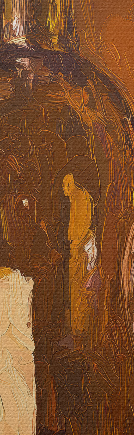 Ahhoz, hogy a vásznat a feszítőrúdra feszítsük anélkül, hogy a kép megsérülne, tükrözött képet használunk.