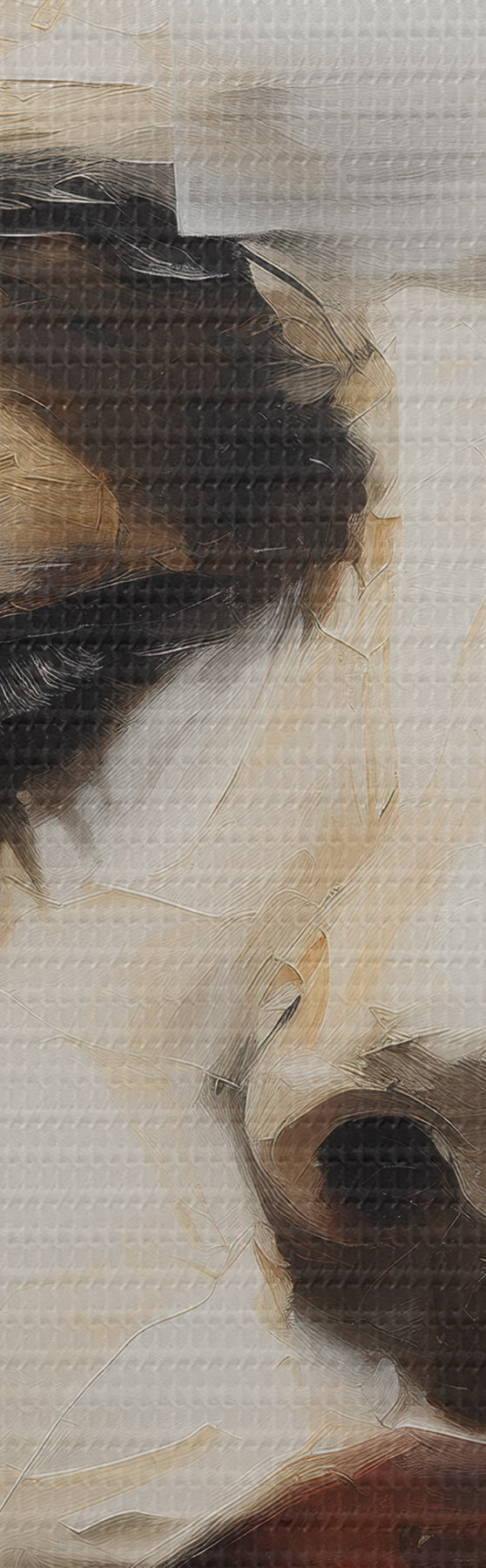 Ahhoz, hogy a vásznat a feszítőrúdra feszítsük anélkül, hogy a kép megsérülne, tükrözött képet használunk.