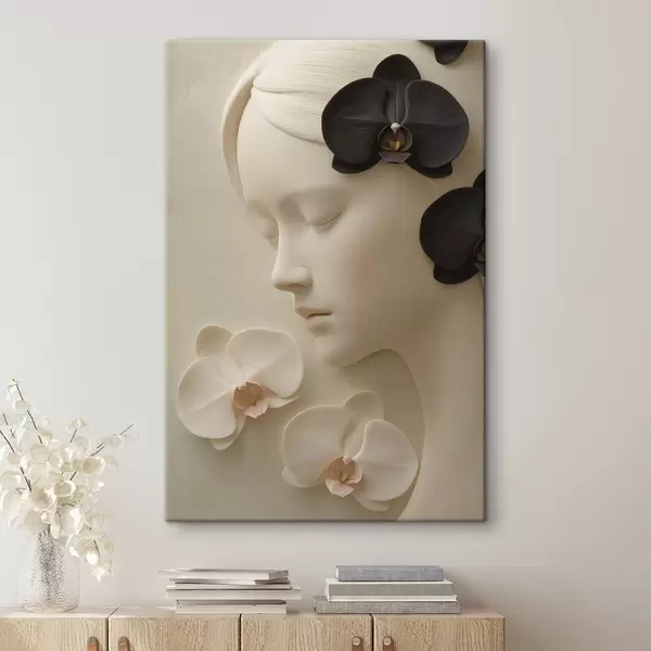 Vászonkép lány orchideákkal, dombormű stílusban Nr s47942
