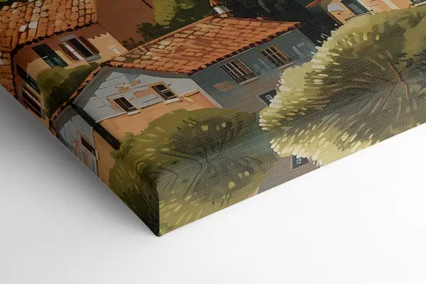 Vászonkép mediterrán domboldali falu, egymásra épült, meleg tónusú házak terrakotta tetővel Nr s47951