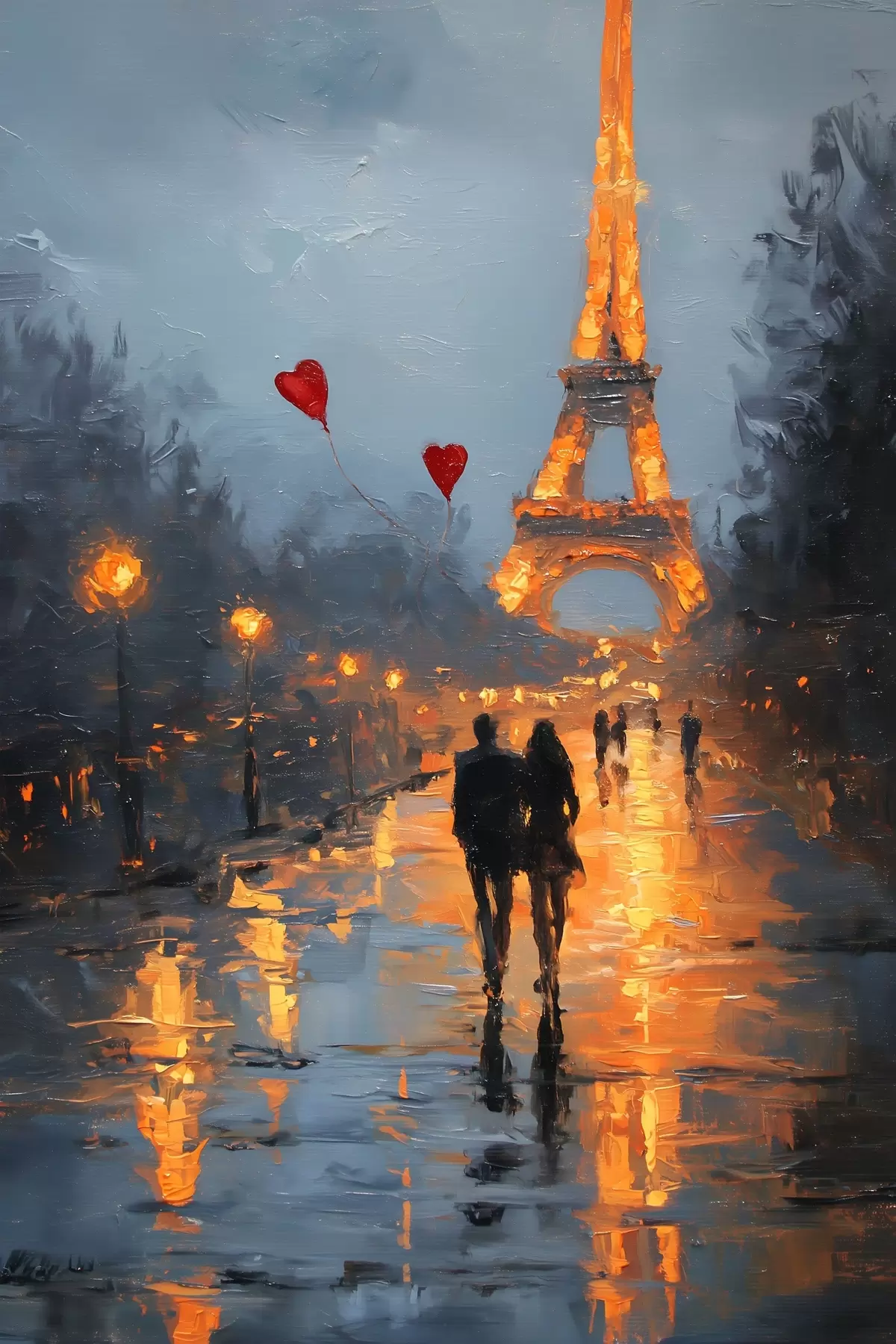 Vászonkép romantikus séta Párizsban olajfestmény stílusban Nr s47952