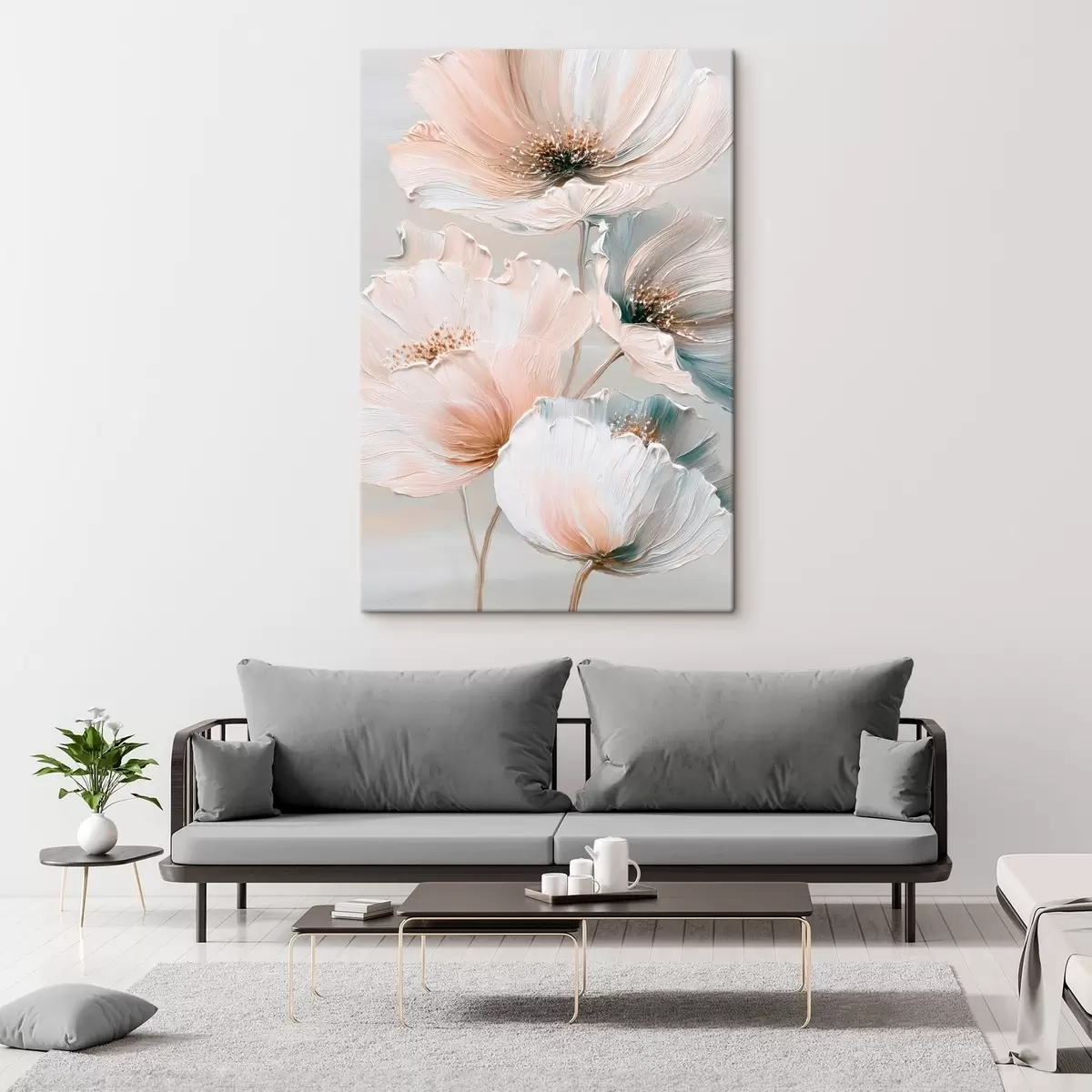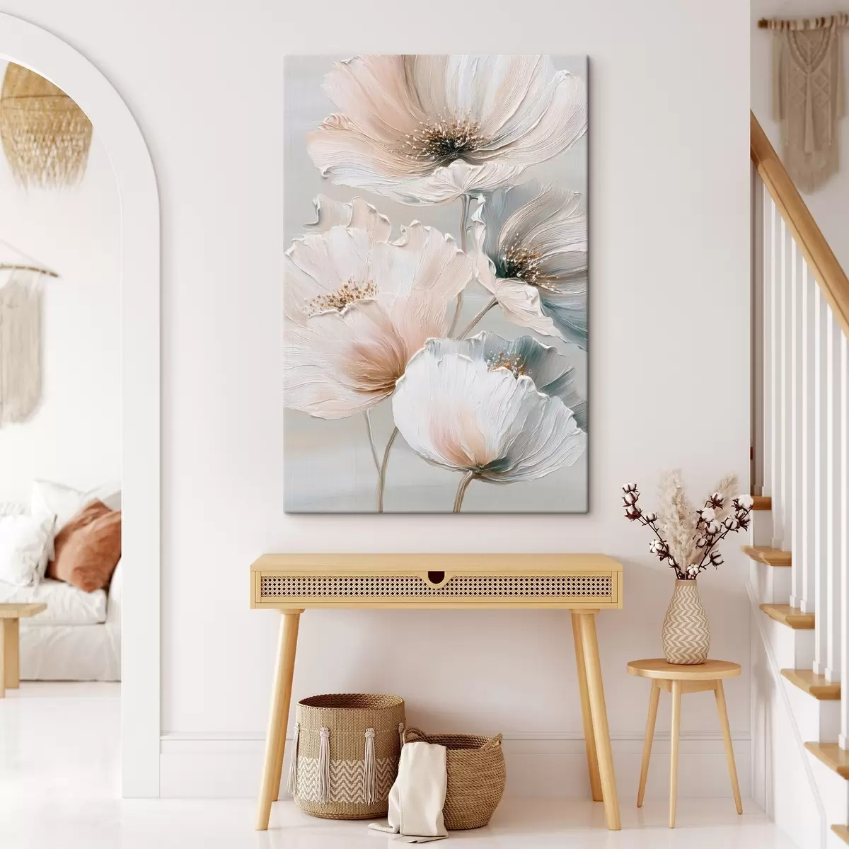 Vászonkép Virágkompozíció texturált ecsetvonásokkal, bézs-rózsaszín színpalettával Nr s47961