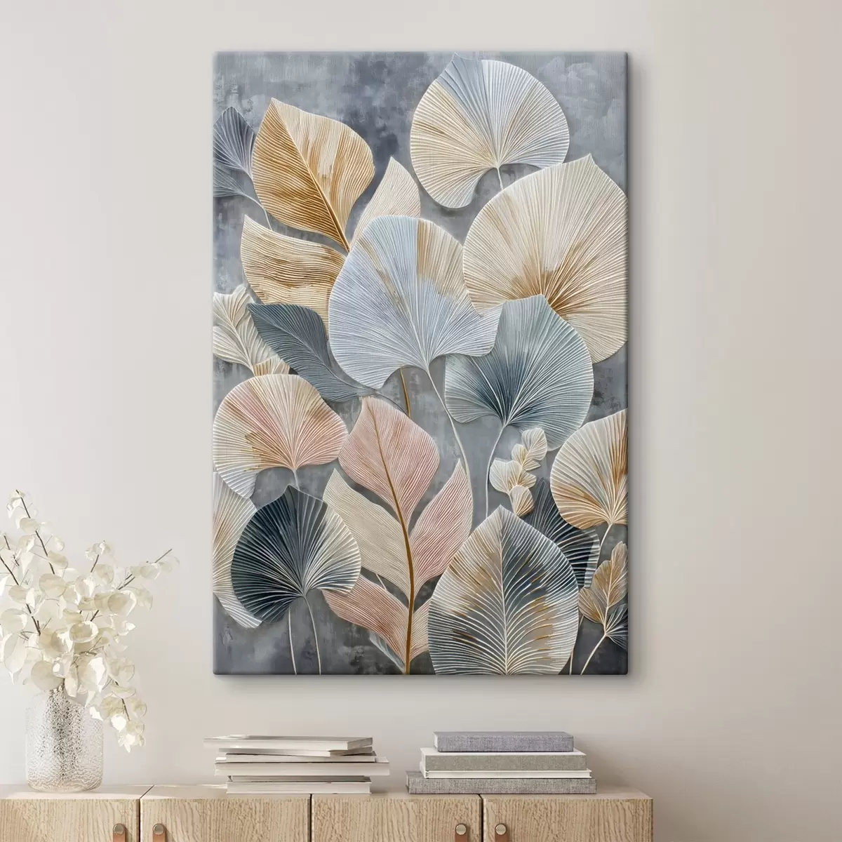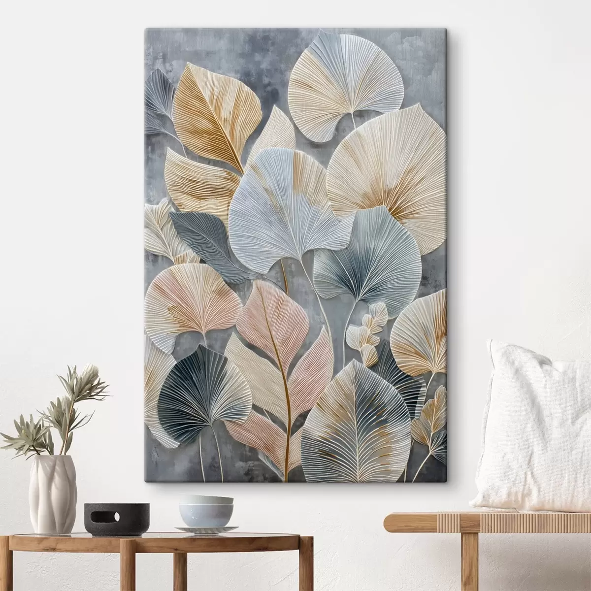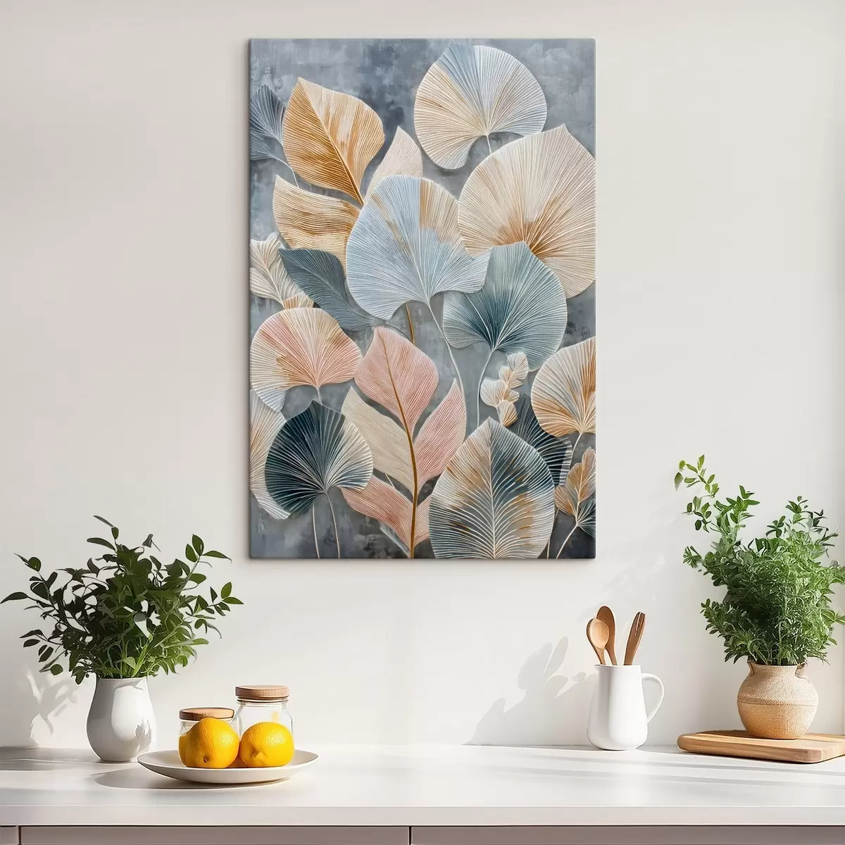 Vászonkép Sötét háttér előtt sokszínű, kifejezett textúrájú dekoratív lombozat Nr s47964