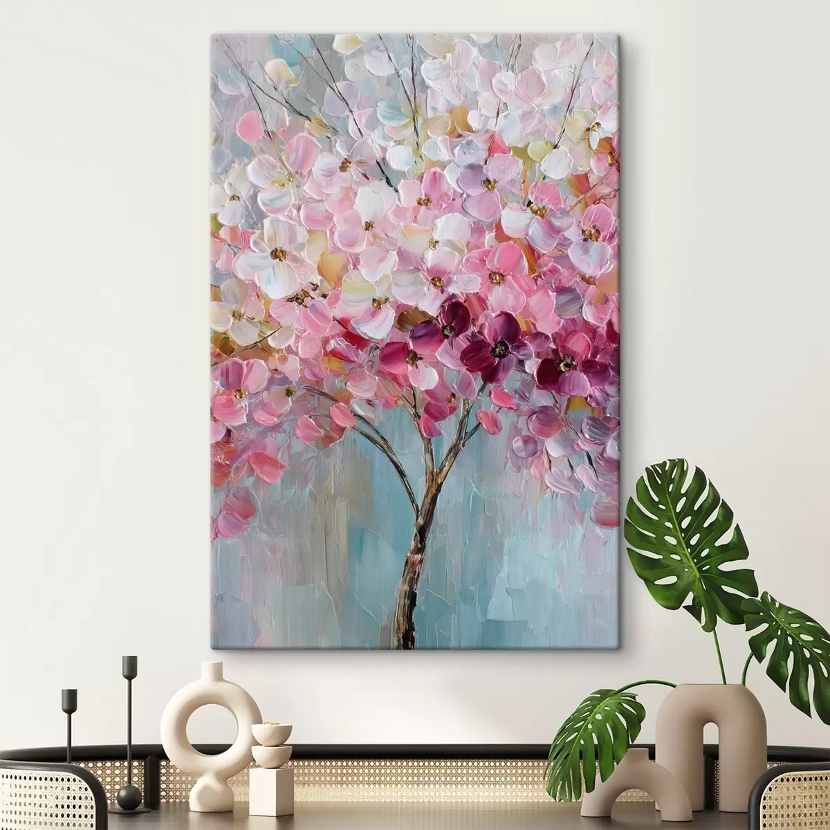 Vászonkép Finom rózsaszín virágok a tiszta égbolton Nr s47988