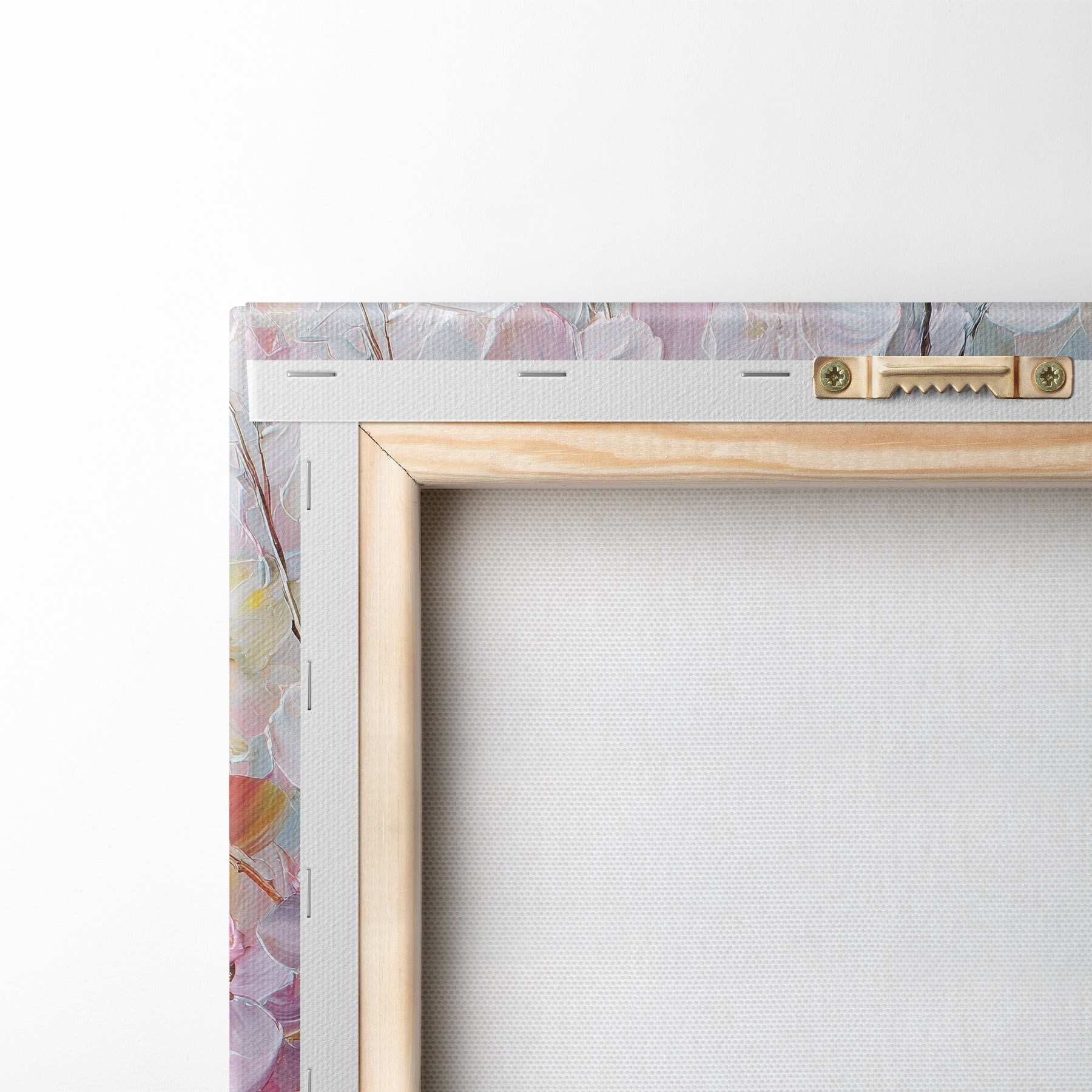 Ahhoz, hogy a vásznat a feszítőrúdra feszítsük anélkül, hogy a kép megsérülne, tükrözött képet használunk.
