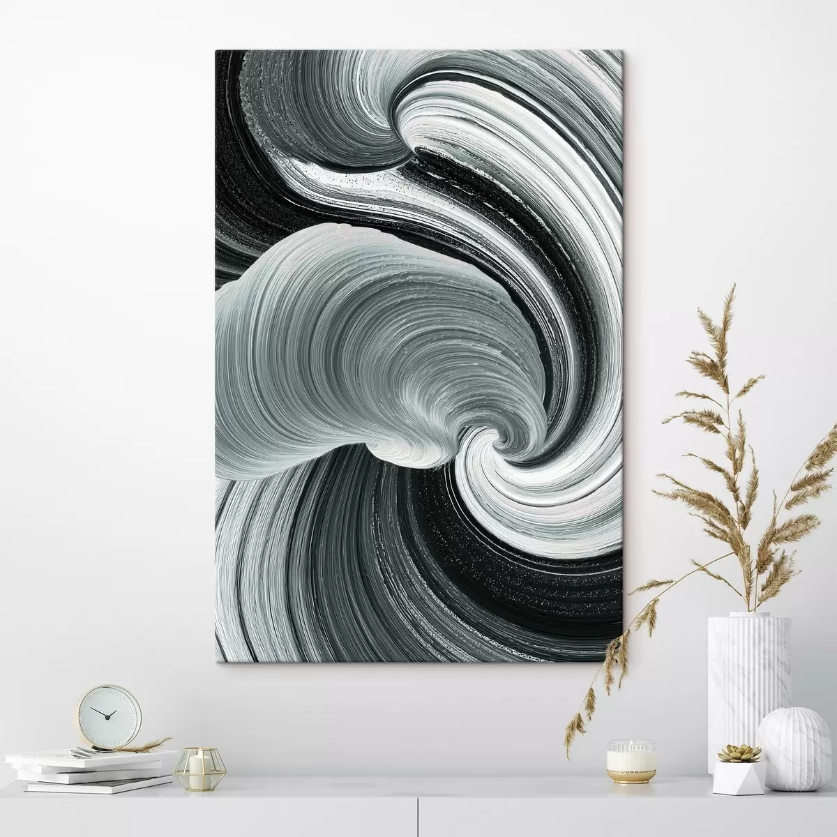 Vászonkép Mozgásenergia: fekete-fehér absztrakt olajfestmény stílusban Nr s47990