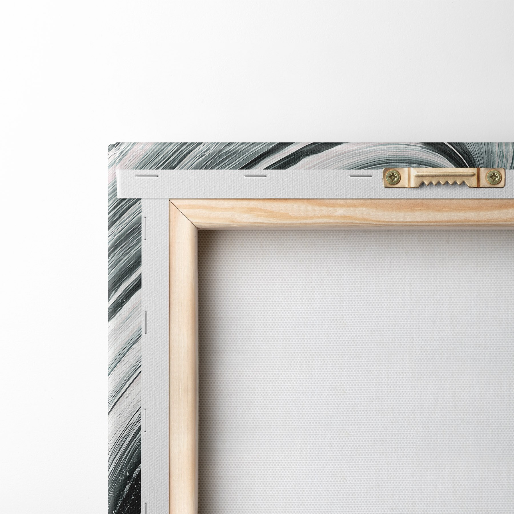 Ahhoz, hogy a vásznat a feszítőrúdra feszítsük anélkül, hogy a kép megsérülne, tükrözött képet használunk.