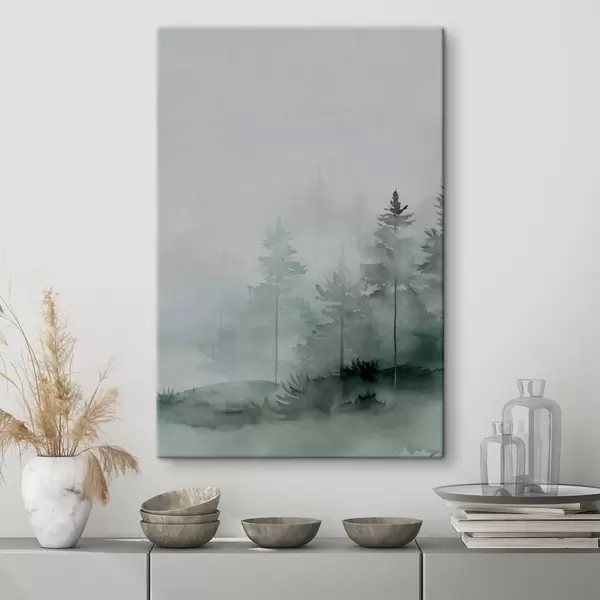 Vászonkép Fenyőfák az erdőben, akvarell imitáció Nr s47998