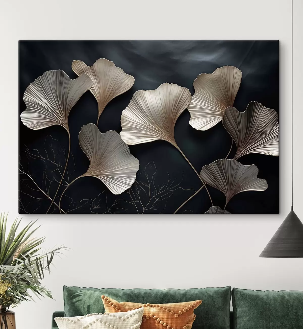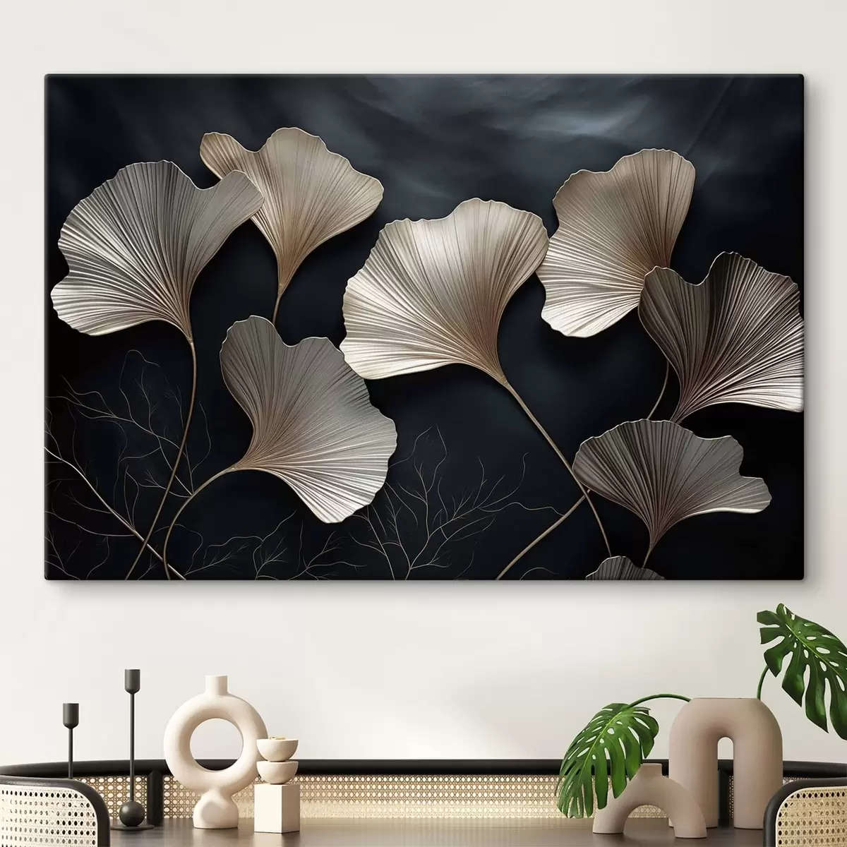 Vászonkép Ginkgo levelek sötét háttér előtt Nr s48008