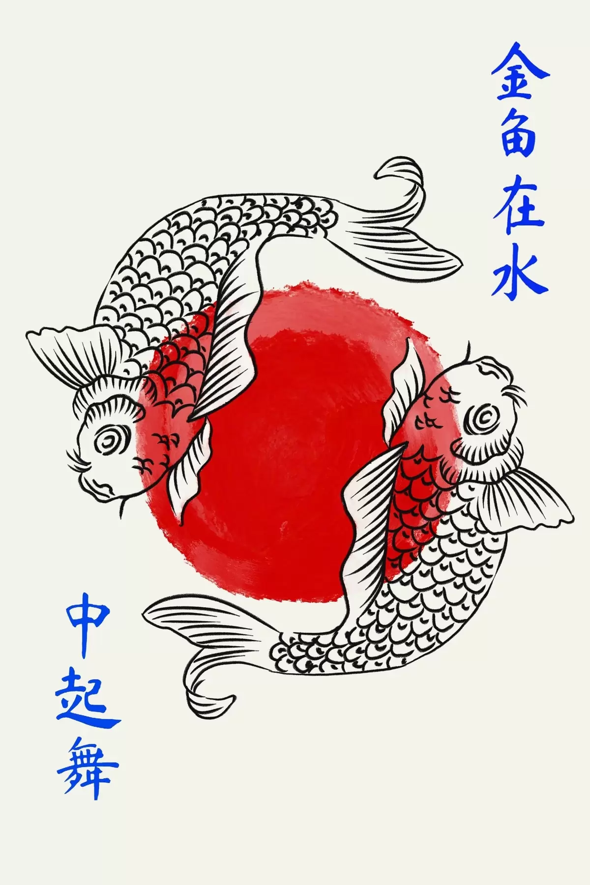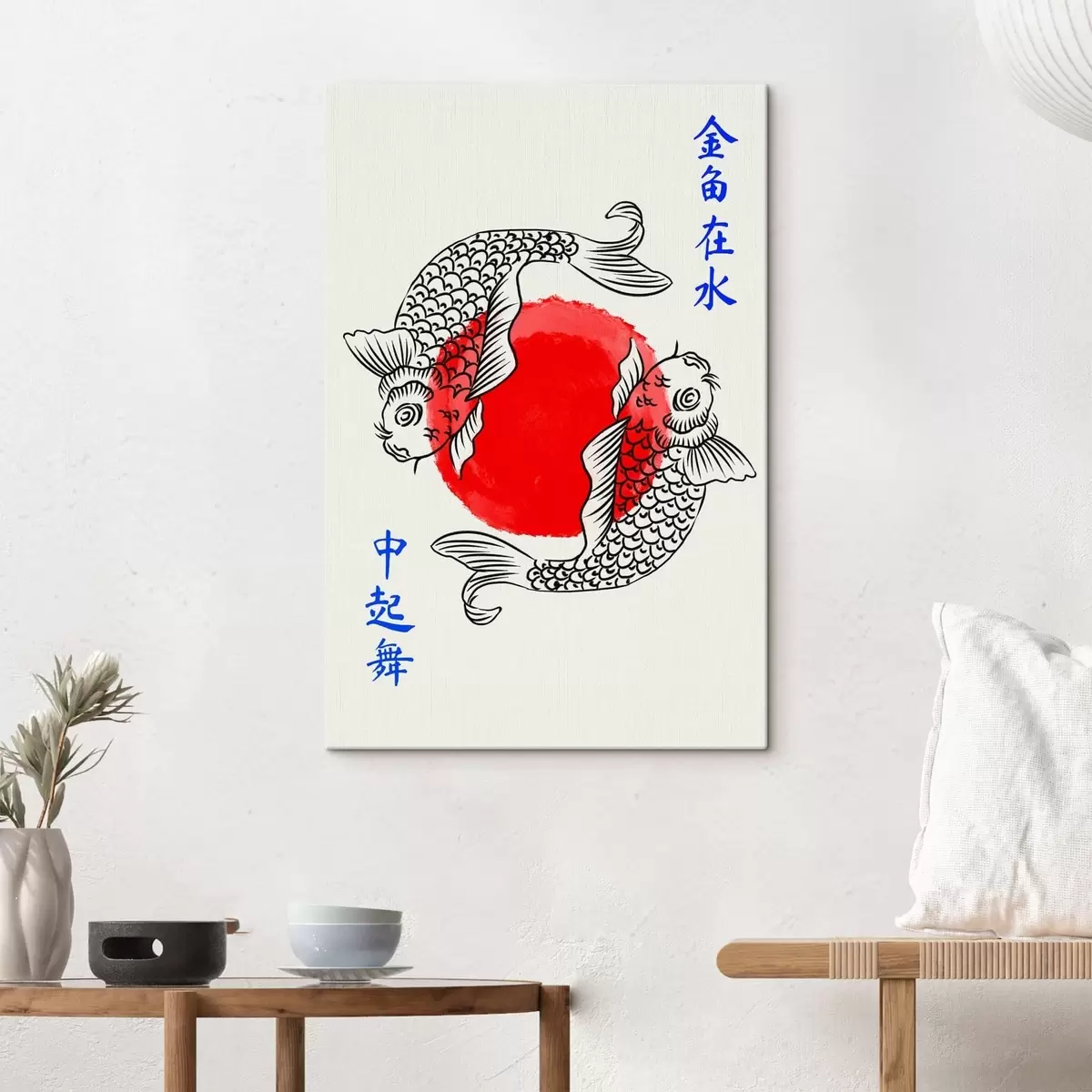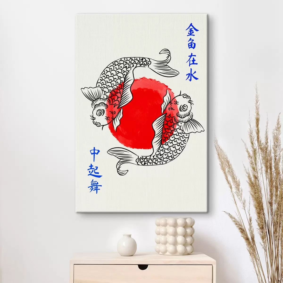 Vászonkép Két díszes hal egy piros kör körül Nr s48033