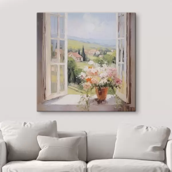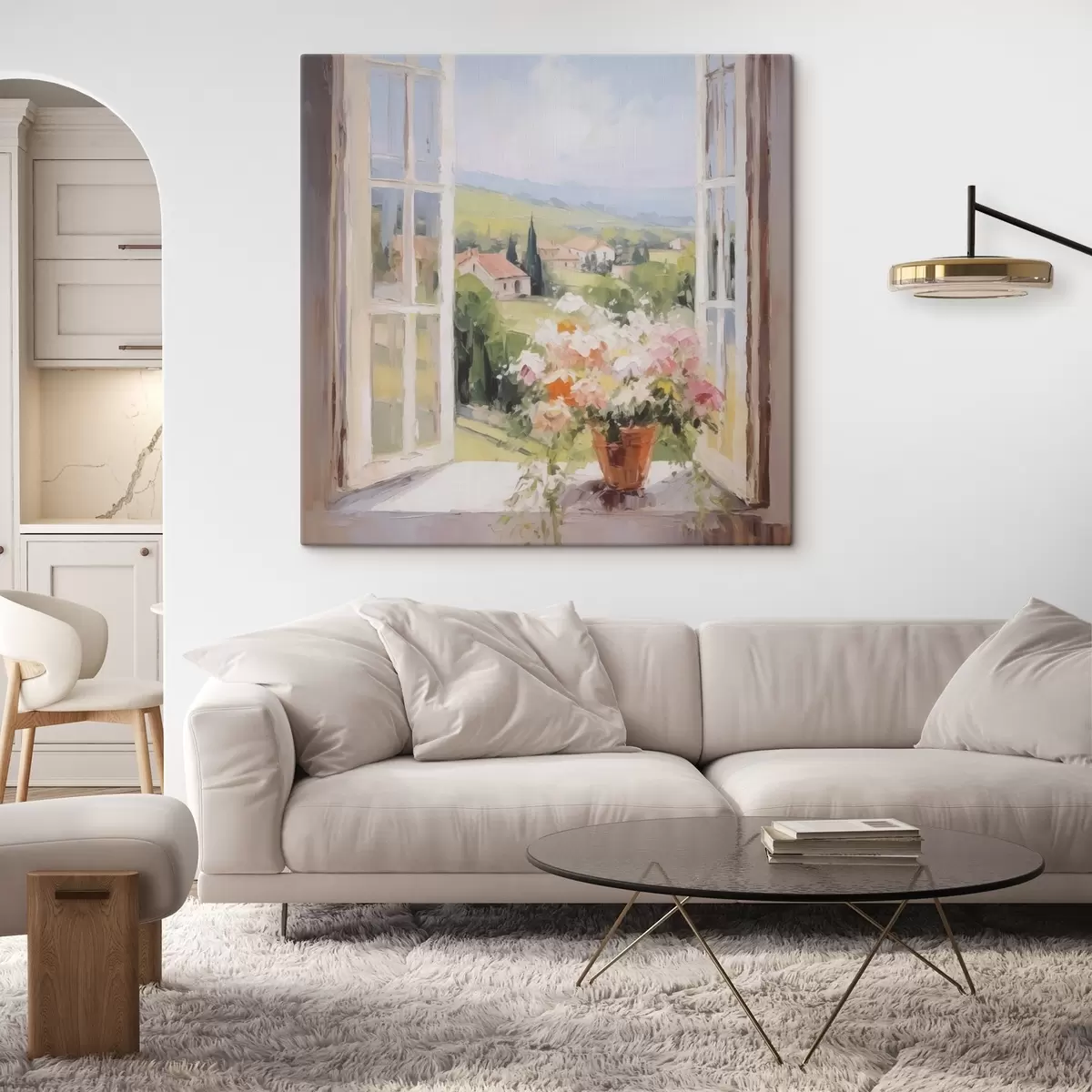 Vászonkép Csokor egy vázában az ablak mellett Nr s48052