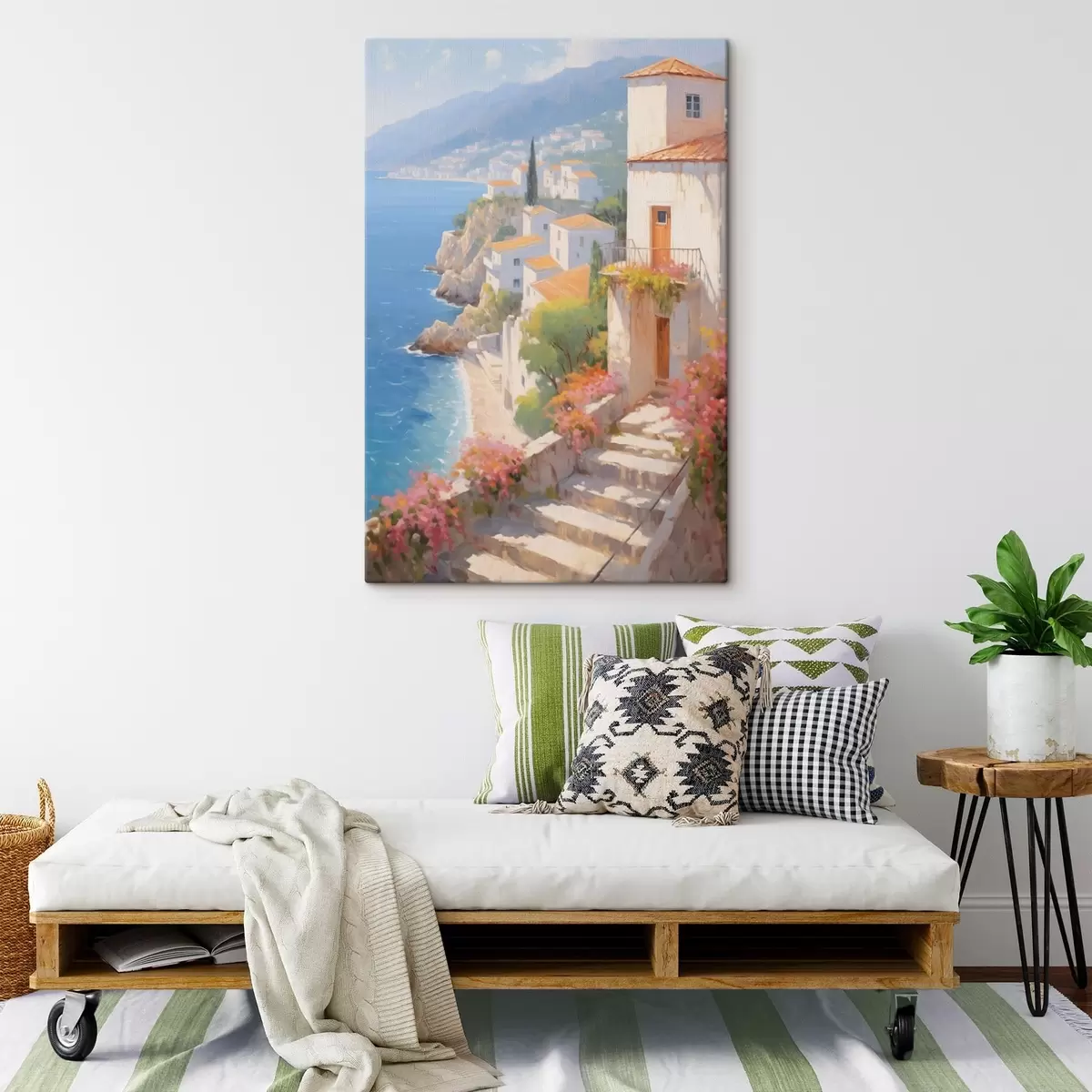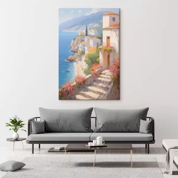 Vászonkép impresszionista mediterrán sziklafalú falu Nr s48060