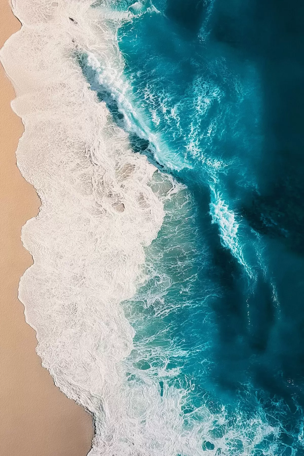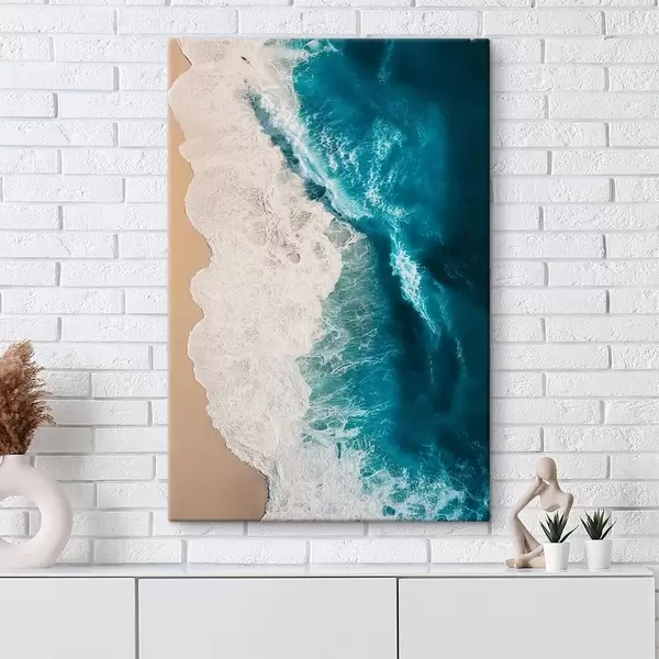 Vászonkép légi felülnézet az óceán hullámairól, amelyek a homokos tengerparttal találkoznak Nr s48062