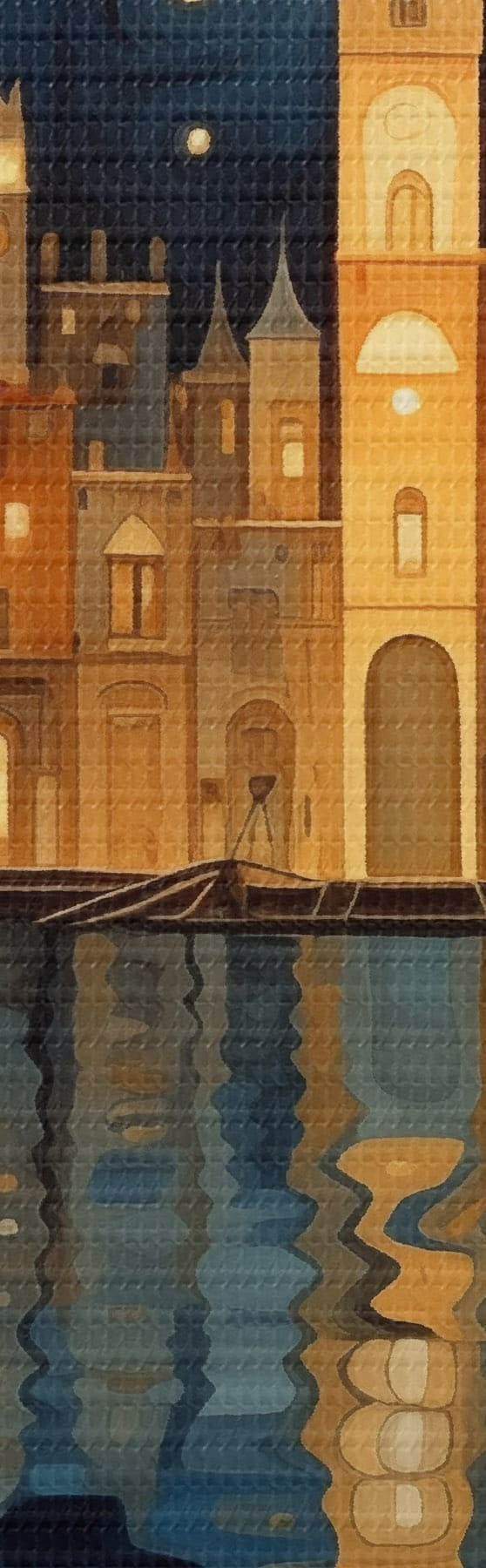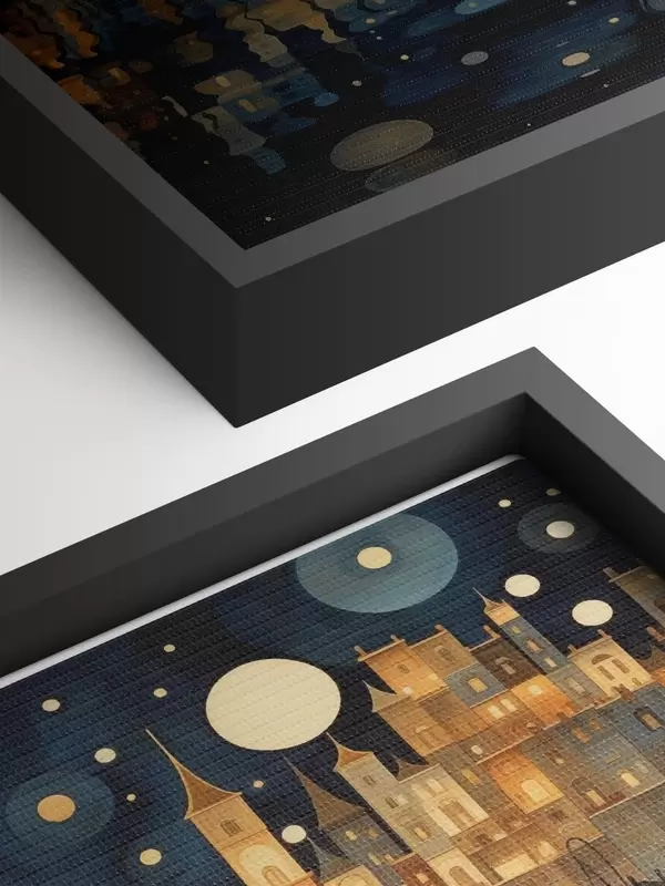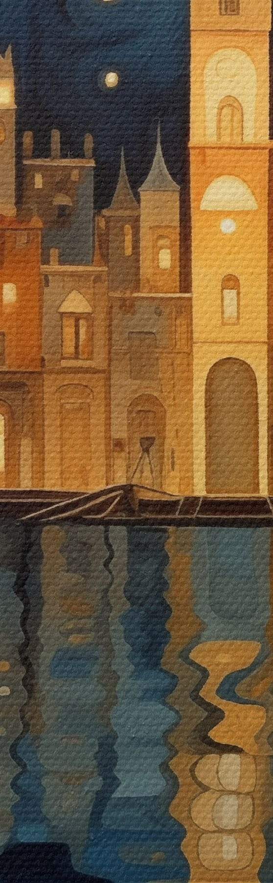 Vászonkép szeszélyes éjszakai város a víz mellett Nr s48063