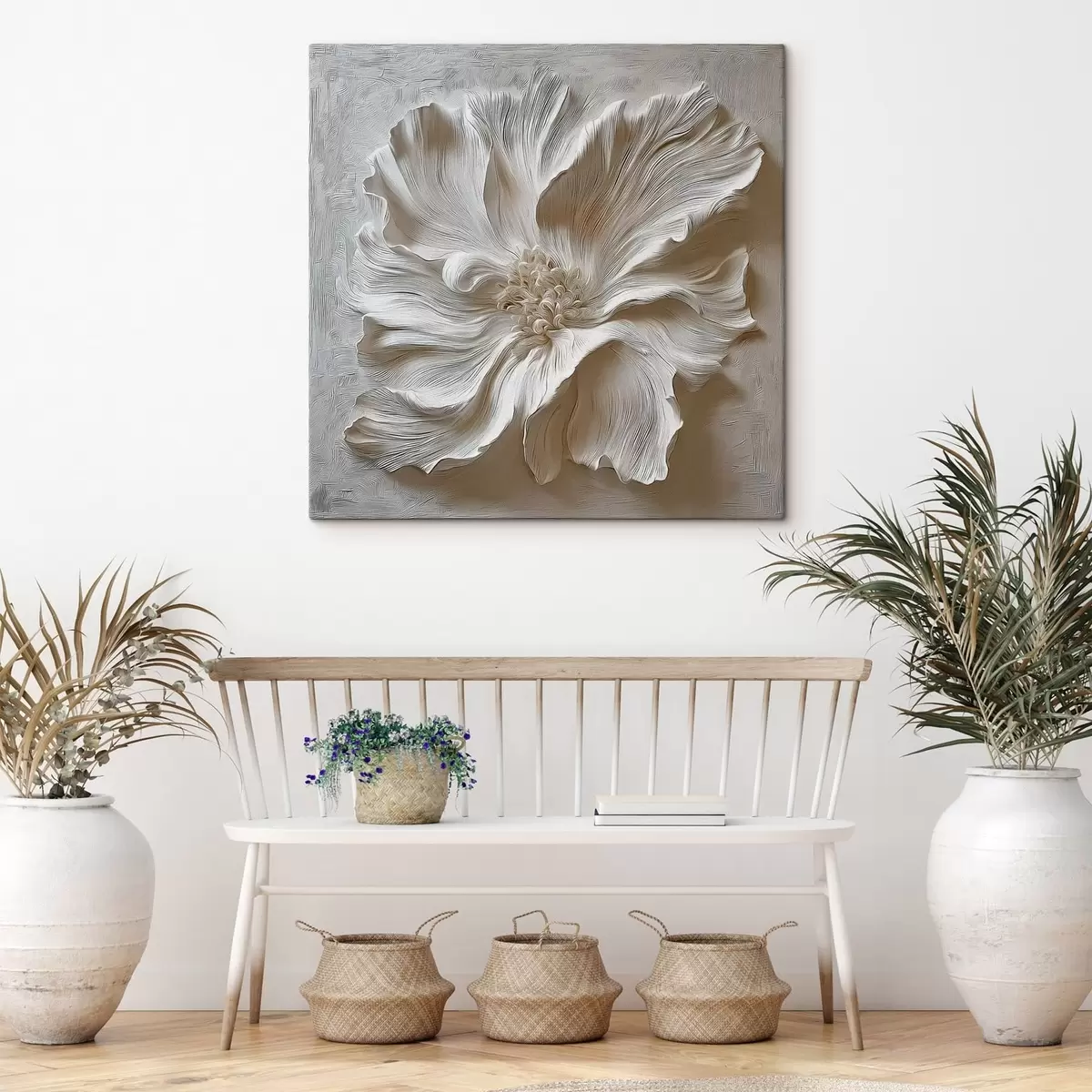 Vászonkép fehér gipsz dombormű virágszobor Nr s48065