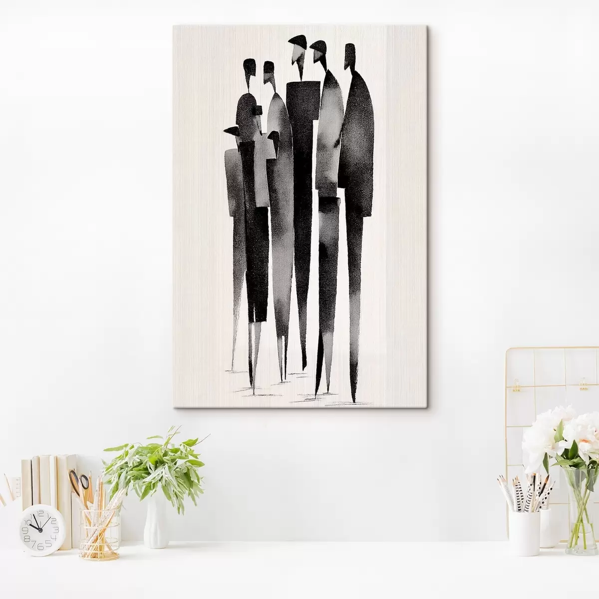 Vászonkép minimalista, hosszúkás emberi alakok sorban állnak Nr s48068
