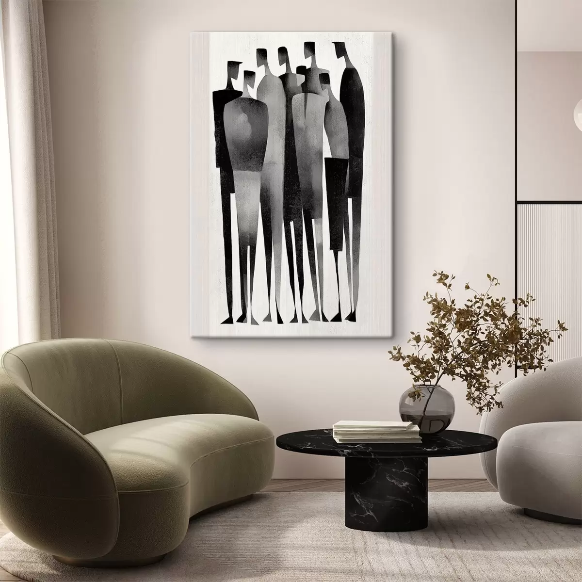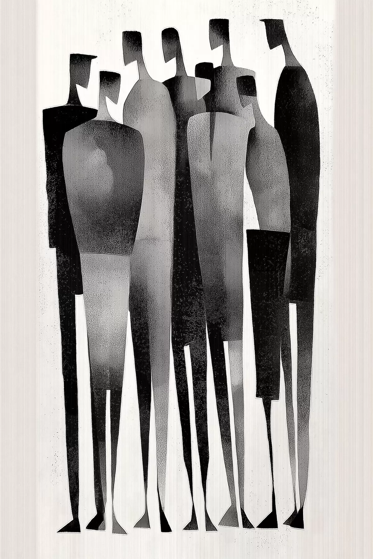 Vászonkép minimalista, hosszúkás emberi alakok sorban állnak Nr s48069