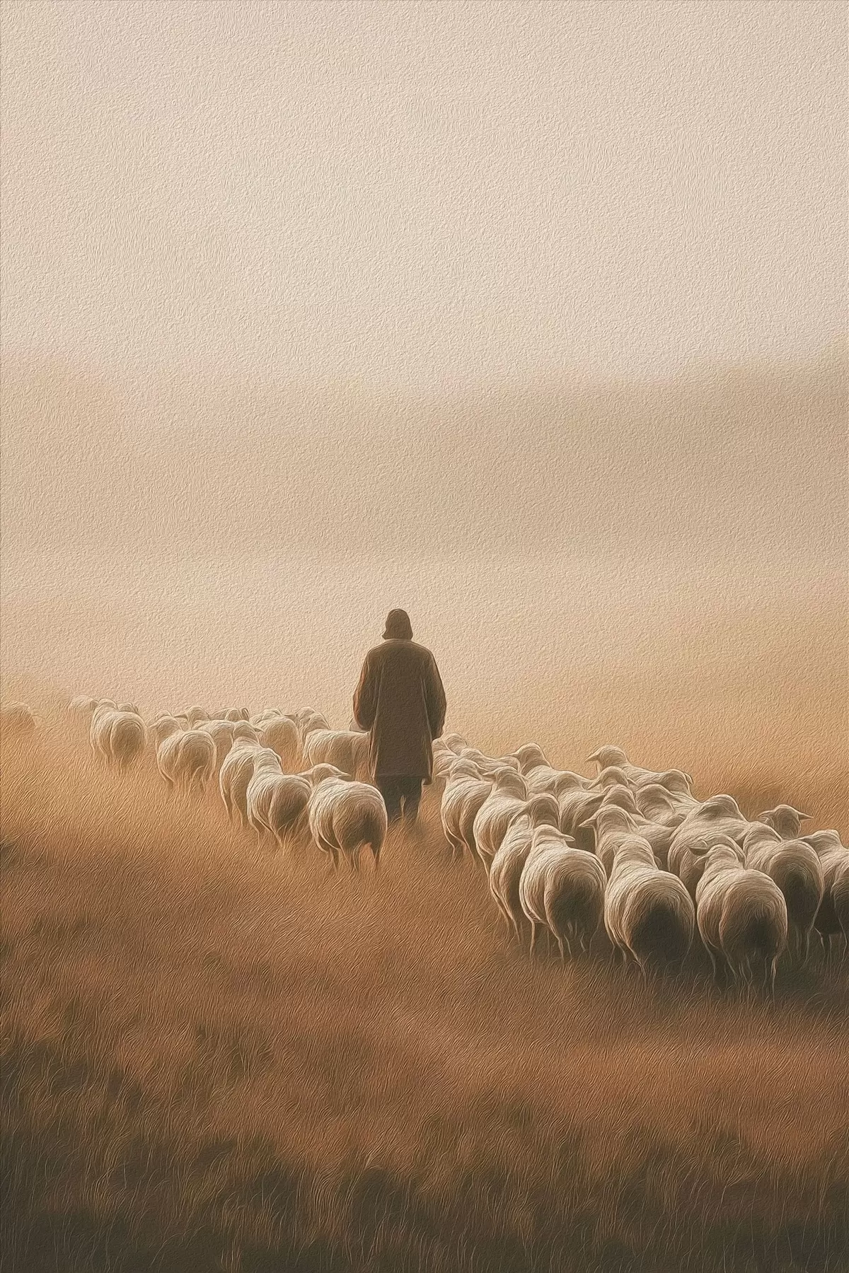 Vászonkép pásztor juhokkal sétál a nyílt mezőn Nr s48077