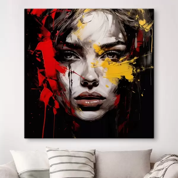 Vászonkép Női portré piros és sárga ecsetvonásokkal Nr s48089