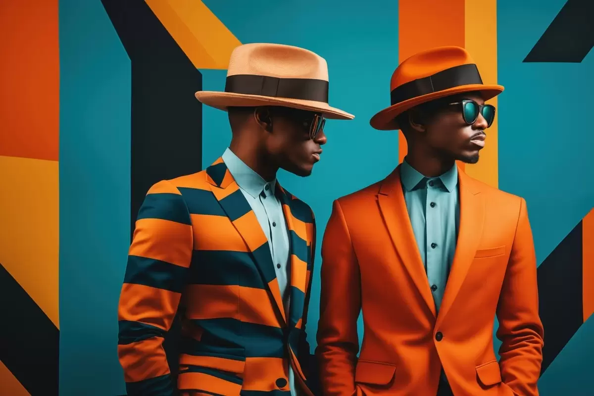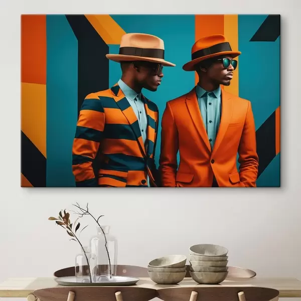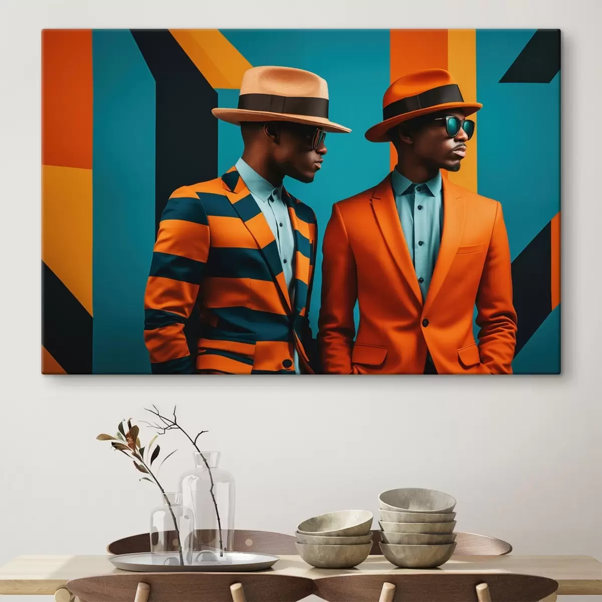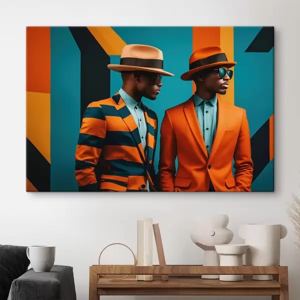 Vászonkép Két férfi világos öltönyben és kalapban Nr s48091