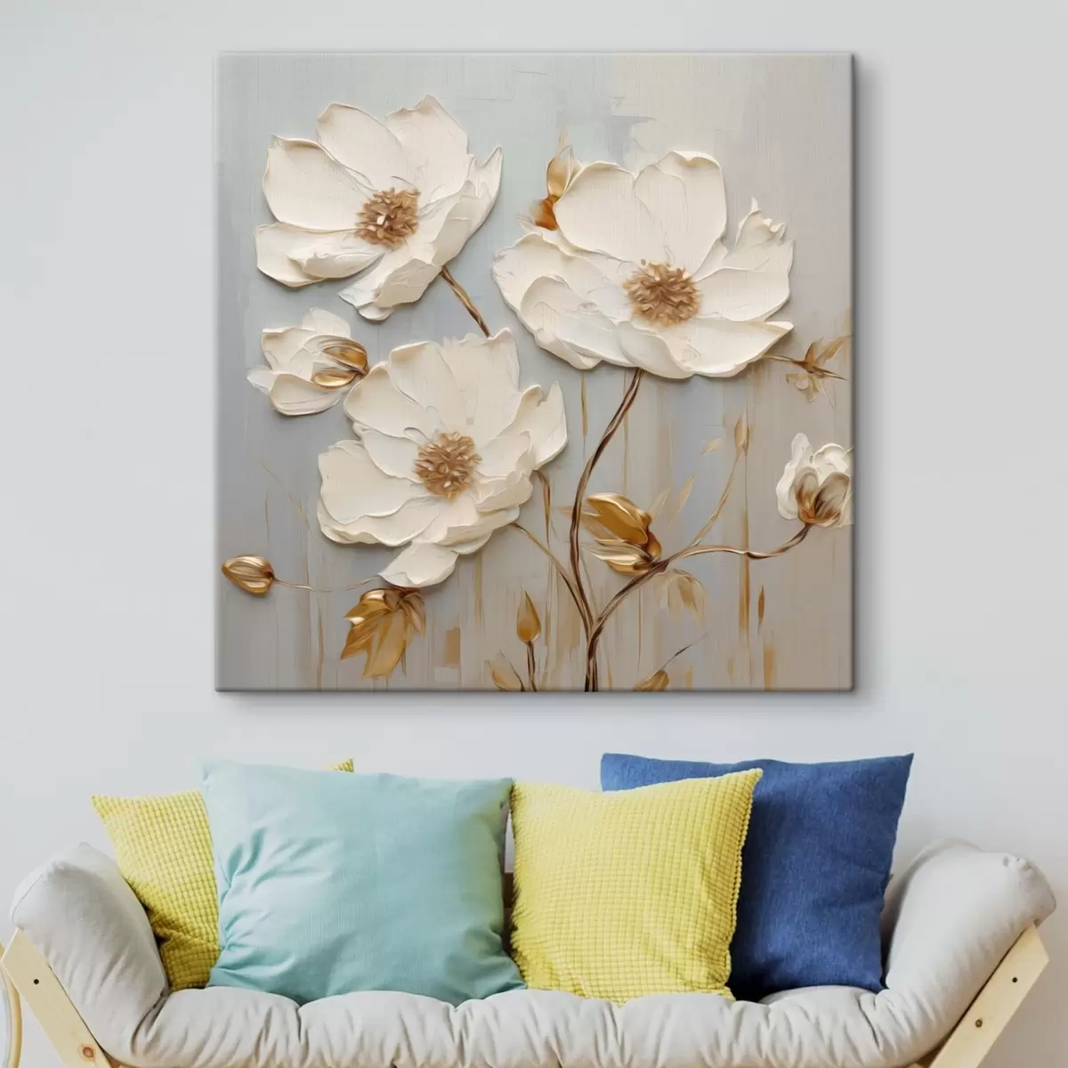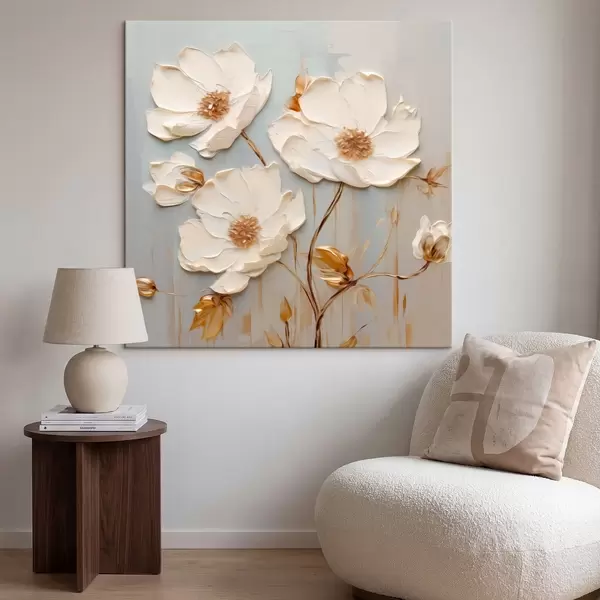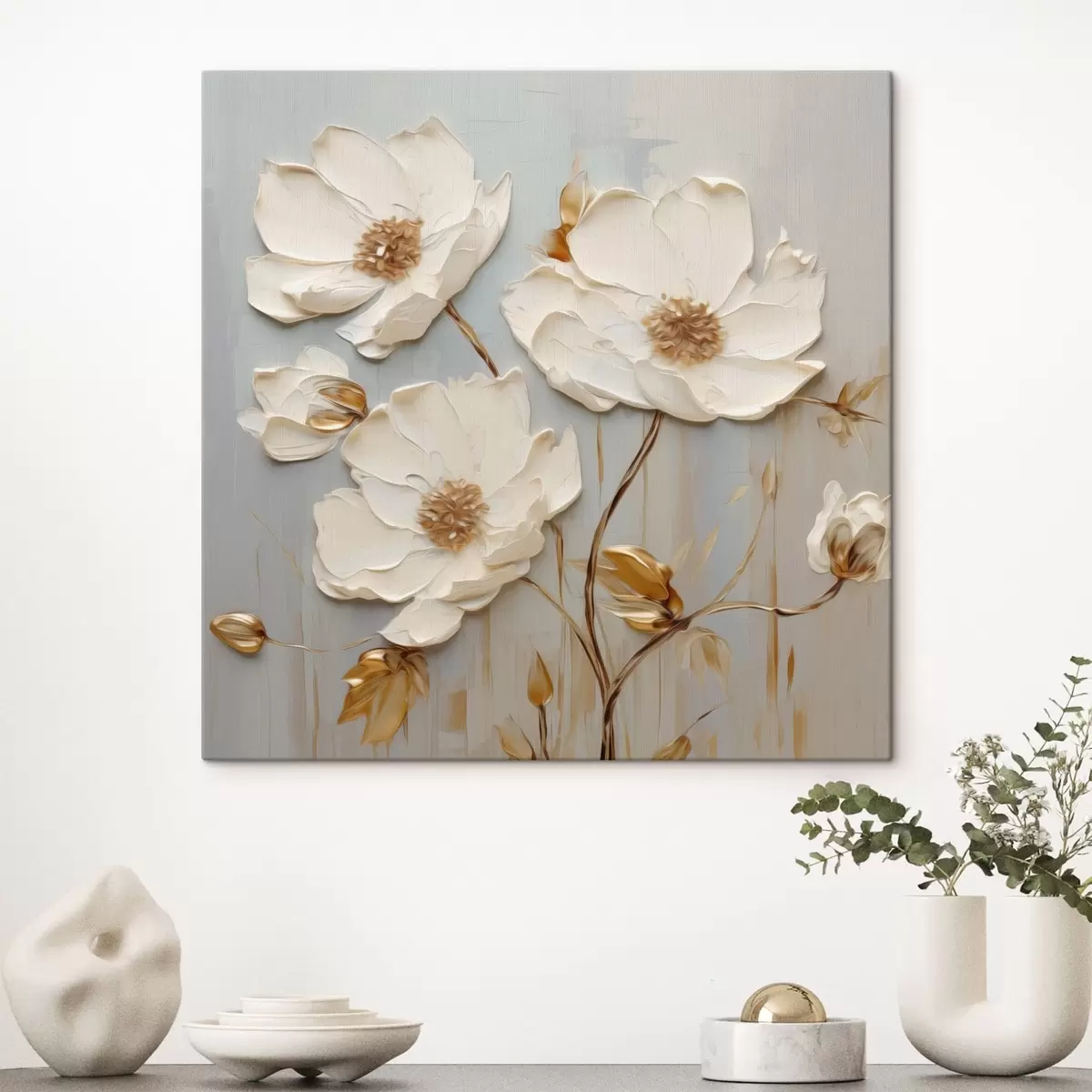 Vászonkép Relief fehér virágok meleg levelekkel Nr s48093
