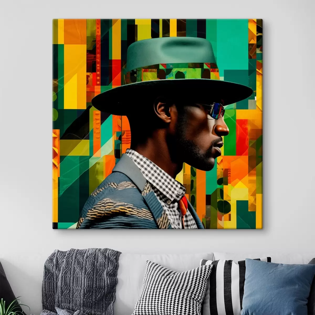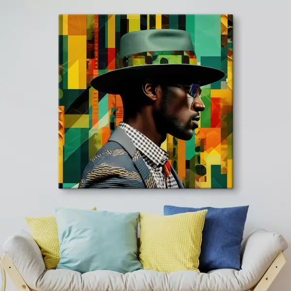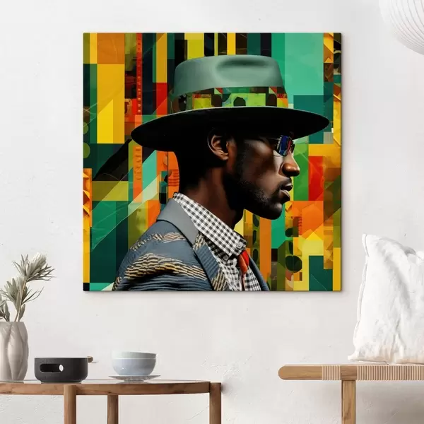 Vászonkép Kalapos férfi portré élénk háttér előtt Nr s48100
